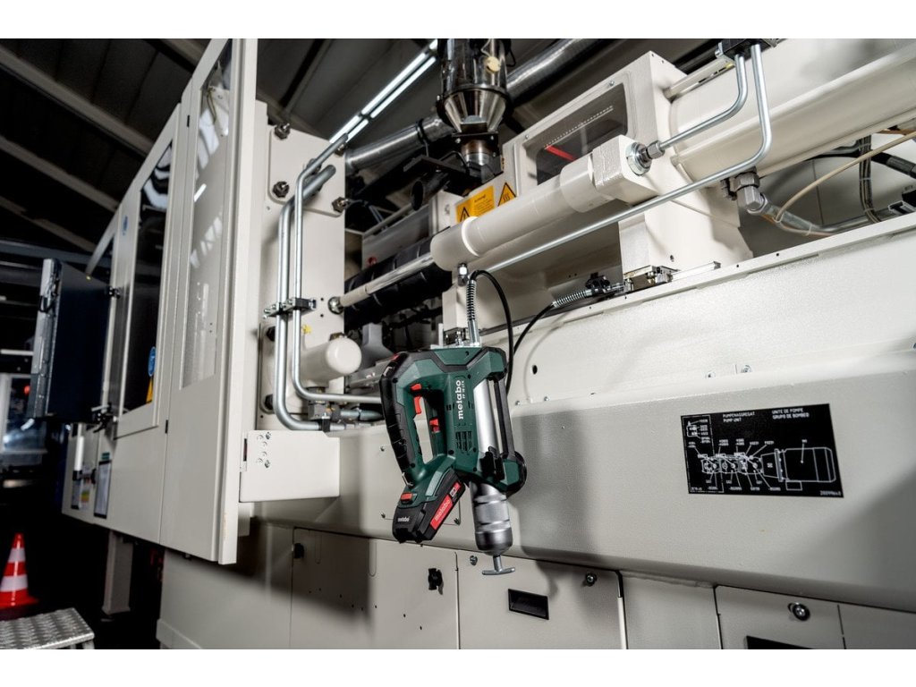 Kompaktní akumulátorový mazací lis se 2 pracovními stupni a vysokým tlakem vytlačování (max. 690 bar) pro mobilní údržbu strojů a systémů Čistá práce díky přednastavení vytlačovaného množství pomocí nastavovacího kolečka s 10 úrovněmi Možnost výběru mezi vysokým tlakem a vysokým průtokem v závislosti na aplikaci Optimální přehled během mazání díky LED přímo na pouzdru a další LED pro upevnění na konci hadice Aretace spínače pro uživatelsky příjemnou práci v trvalém provozu 3cestné plnění: kartuše s mazivem, nádoby nebo přímé plnění Integrovaný odvzdušňovací ventil pro setrvalý postup práce Magnet pro připevnění na kov (příslušenství), praktický ramenní popruh a dlouhá hadice s držákem pro flexibilní možnosti použití Mnoho značek, jeden systém akumulátorů: Tento produkt lze kombinovat se všemi 18V akumulátorovými články a nabíječkami značek CAS Druh akumulátorových článků LiPOWER Napětí akumulátoru 18 V Kapacita akumulátorových článků 2 x 2 Ah Velikost uchycení 400 g Tlak vytlačování 690 / 414 bar Délka hadice 1200 mm Hmotnost bez akumulátorového článku 4 kg Hmotnost vč. akumulátorového článku 4.4 kg Příslušenství Přídavné LED světlo na hadici Ramenní popruh 2 akumulátorové články Li-Power (18 V/2,0 Ah) Nabíječka SC 30 metaBOX 165 LDodatočné parametre