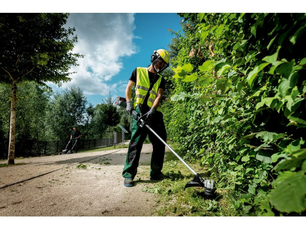Všestranné použitie s bubnom s dvojitou strunou na kosenie trávy alebo s nožmi (príslušenstvo) na kosenie krovín Jednoduchá výmena struny krátkym poklepaním na gombík cievky počas práce Rýchla výmena nite Metabo: rýchla a bez použitia náradia, nie je potrebné vyberať ani otvárať cievku Výkonný bezuhlíkový motor pre vysoký výkon kosenia a dlhý čas prevádzky na jedno nabitie akumulátora Plynulý rozbeh vďaka rýchlemu a výkonnému štartu Flexibilná práca vďaka plynulej regulácii otáčok Robustné používanie vďaka kovovému krytu motora a prídavným ochranným svorkám na článkoch akumulátora Bezpečná práca vďaka pogumovaným úchopovým bodom a prídavnému bezpečnostnému spínaču Zdravotne nezávadná poloha a vyvážená pracovná hmotnosť vďaka individuálne nastaviteľnému ramennému popruhu Šetrný k životnému prostrediu a tichý vďaka akumulátorovej prevádzke, takže sa môže používať aj v priestoroch citlivých na hluk 100 % kompatibilita s 18 V triedou: výkonná 36 V prevádzka s dvoma 18 V akumulátorovými článkami Metabo Mnoho značiek, jeden batériový systém: tento výrobok možno kombinovať so všetkými 18 V akumulátormi a nabíjačkami značky CAS: www.cordless-alliance-system.com Technické údaje Napätie akumulátora 18 V Priemer rezu 40 cm Voľnobežné otáčky 0 - 6000 /min Priemer vlákna 2 mm Rukoväť Kruhová rukoväť Hmotnosť bez akumulátora 3,5 kg Hladina akustického tlaku 72 dB(A) Hladina akustického výkonu (LwA) 93 dB(A) Neistota merania K 1,1 dB(A) Hmotnosť vrátane akumulátora 4,4 kg Voľnobežná rýchlosť 4,1 m/s2 Neistota merania K 1,5 m/s2 Rozsah dodávky Kruhová rukoväť Ramenný popruh Ochranný kryt Dvojitá cievka na struny (O 2 mm struny, 4 m) Kombinovaný kľúč bez akumulátora, bez nabíjačkyDodatočné parametre