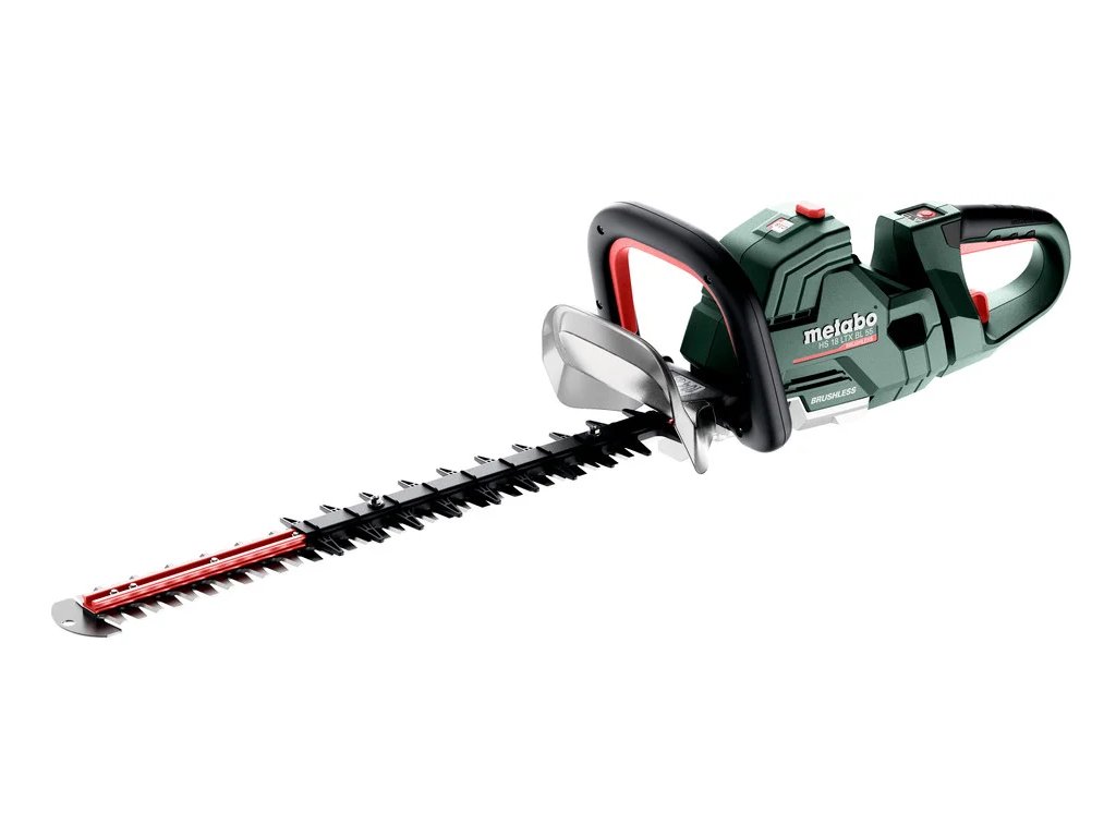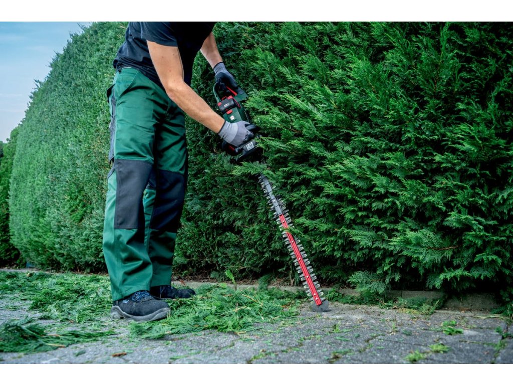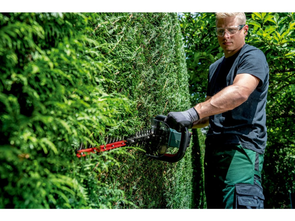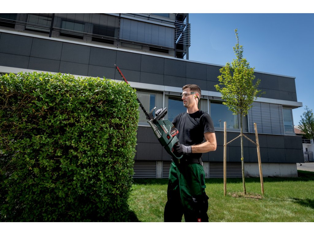 Výkonný bezuhlíkový motor pre maximálny rezný výkon a dlhú životnosť batérie Vysoko účinný, presný dvojitý systém rezania vďaka obojstranne diamantom brúseným a laserom rezaným zubom noža Otočná rukoväť s 5 polohami na bezpečné a flexibilné ovládanie nožníc na živý plot Pohodlné obojručné ovládanie vďaka dlhému spínaču a spínaču umiestnenému na vnútornej strane rukoväte Bezpečná práca vďaka dokonalému vyváženiu, mäkkej rukoväti, ochrane rukoväte na strane noža a rýchlemu zastaveniu (za 0,2 sekundy) Metabo VibraTech (MVT): integrované tlmenie vibrácií pre zdravotne bezpečnú prácu pri nepretržitej prevádzke Centrálny ovládací panel: bezpečnostný vypínač s funkciou pohotovostného režimu a kontrolné LED displeje Metabo S-automatická bezpečnostná spojka: chráni lištu a prevodovku pri zablokovaní cudzími predmetmi Odolnosť pri používaní vďaka horčíkovému krytu prevodovky a chránenej polohe akumulátorových článkov Ochrana proti nárazu chráni používateľa a prevodovku pred spätným nárazom pri práci v blízkosti stien a podláh Priestorovo úsporná montáž na stenu vďaka praktickému závesnému oku Šetrný k životnému prostrediu a tichý vďaka batériovej prevádzke, takže sa môže používať aj v zónach citlivých na hluk Mnoho značiek, jeden batériový systém: tento výrobok možno kombinovať so všetkými 18 V akumulátormi a nabíjačkami značky CAS: www.cordless-alliance-system.com Rozsah dodávky: Ochranné puzdro na nôž, bez akumulátora, bez nabíjačky Technické údaje: Napätie batérie: 18 V Dĺžka noža: 55 cm Dĺžka rezu: 50 cm Max. hrúbka rezu: 21 mm Počet rezov pri voľnobežných otáčkach: 3400 /min Hmotnosť bez akumulátora: 4 kg Hladina akustického tlaku: 72 dB(A) Hladina akustického výkonu (LwA): 92 dB(A) Neistota merania K: 3 dB(A) Hmotnosť vrátane akumulátora: 4,4 kg Voľnobežná rýchlosť: 4,1 m/s2 Neistota merania K: 1,5 m/s2Dodatočné parametre
