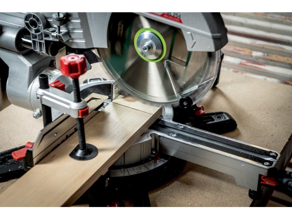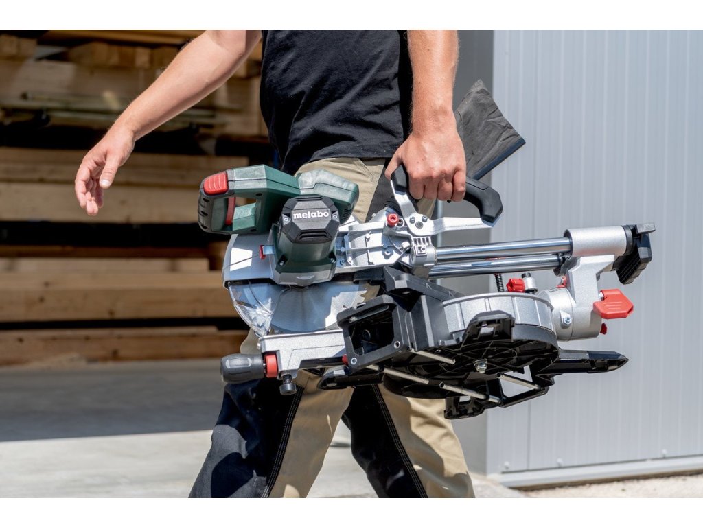 Kompaktná akumulátorová mobilná rezacia a pokosová píla triedy M - ľahká, presná, používateľsky prívetivá Výkonný bezuhlíkový motor pre silný rezný výkon ako pri reťazovej píle Až 205 rezov do mäkkého dreva 80 x 80 mm na jedno nabitie akumulátora (LiHD 10 Ah) Presná línia rezu (PCL): presná línia rezu bez nutnosti zmeny polohy vďaka dômyselne umiestneným LED diódam Vysoký rezný výkon vďaka zdvihu pre široké obrobky Otočný stôl s rýchlym a presným nastavením bežných uhlov pomocou aretačných bodov Sklon pílového kotúča od -2 do 47°, vhodný aj na spätné rezy Robustná konštrukcia z hliníkového tlakového odliatku pre najnáročnejšie požiadavky Účinné odsávanie triesok s integrovaným odsávaním pilín Pomalý rozbeh a ochrana proti preťaženiu pre dlhú životnosť motora a prevodovky Výsuvné nadstavce stola, ktoré sa dajú odobrať aj na podopretie extrémne dlhých obrobkov Rýchloupínacia rukoväť na bezpečné upevnenie obrobku zhora alebo spredu Hĺbkový doraz na jednoduché vytváranie drážok Všetky stupnice a ovládacie prvky sú viditeľné a intuitívne ovládateľné z pracovnej polohy Ergonomické úchopové plochy na nosenie jednou alebo oboma rukami Mnoho značiek, jeden batériový systém: tento výrobok je možné kombinovať so všetkými 18 V akumulátormi a nabíjačkami značky CAS: www.cordless-alliance-system.com Napätie 18V akumulátora Plocha na sedenie 345 x 760 mm Max. šírka rezu 90°/45°305 / 215 mm Max. hĺbka rezu 90°/45°92 / 47 mm Kapacita rezu 90°/90°305 x 92 mm Kapacita rezu 45°/45°215 x 47 mm Ľavé/pravé nastavenie otočnej dosky 50° / 50° Sklon pílového kotúča vľavo/vpravo 47 / 2° Pílový list 254 x 30 mm Voľnobežné otáčky 4000 /min Maximálna rýchlosť rezania 53 m/s Hmotnosť bez akumulátora 14,8 kg Emisie hluku Hladina akustického tlaku 91 dB(A) Hladina akustického výkonu (LwA) 100 dB(A) Neistota merania K3 dB(A) Rozsah dodávky: Pílový kotúč "Akumulátorový rez dreva - klasický" 254x30 Z48 2 integrované predĺženia stola skracovací doraz Svorka na materiál Nástroj na výmenu pílového kotúča Vrecko na zachytávanie pilín bez akumulátora, bez nabíjačkyDodatočné parametre