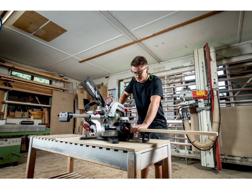 Kompaktná akumulátorová mobilná rezacia a pokosová píla triedy M - ľahká, presná, používateľsky prívetivá Výkonný bezuhlíkový motor pre silný rezný výkon ako pri reťazovej píle Až 205 rezov do mäkkého dreva 80 x 80 mm na jedno nabitie akumulátora (LiHD 10 Ah) Presná línia rezu (PCL): presná línia rezu bez nutnosti zmeny polohy vďaka dômyselne umiestneným LED diódam Vysoký rezný výkon vďaka zdvihu pre široké obrobky Otočný stôl s rýchlym a presným nastavením bežných uhlov pomocou aretačných bodov Sklon pílového kotúča od -2 do 47°, vhodný aj na spätné rezy Robustná konštrukcia z hliníkového tlakového odliatku pre najnáročnejšie požiadavky Účinné odsávanie triesok s integrovaným odsávaním pilín Pomalý rozbeh a ochrana proti preťaženiu pre dlhú životnosť motora a prevodovky Výsuvné nadstavce stola, ktoré sa dajú odobrať aj na podopretie extrémne dlhých obrobkov Rýchloupínacia rukoväť na bezpečné upevnenie obrobku zhora alebo spredu Hĺbkový doraz na jednoduché vytváranie drážok Všetky stupnice a ovládacie prvky sú viditeľné a intuitívne ovládateľné z pracovnej polohy Ergonomické úchopové plochy na nosenie jednou alebo oboma rukami Mnoho značiek, jeden batériový systém: tento výrobok je možné kombinovať so všetkými 18 V akumulátormi a nabíjačkami značky CAS: www.cordless-alliance-system.com Napätie 18V akumulátora Plocha na sedenie 345 x 760 mm Max. šírka rezu 90°/45°305 / 215 mm Max. hĺbka rezu 90°/45°92 / 47 mm Kapacita rezu 90°/90°305 x 92 mm Kapacita rezu 45°/45°215 x 47 mm Ľavé/pravé nastavenie otočnej dosky 50° / 50° Sklon pílového kotúča vľavo/vpravo 47 / 2° Pílový list 254 x 30 mm Voľnobežné otáčky 4000 /min Maximálna rýchlosť rezania 53 m/s Hmotnosť bez akumulátora 14,8 kg Emisie hluku Hladina akustického tlaku 91 dB(A) Hladina akustického výkonu (LwA) 100 dB(A) Neistota merania K3 dB(A) Rozsah dodávky: Pílový kotúč "Akumulátorový rez dreva - klasický" 254x30 Z48 2 integrované predĺženia stola skracovací doraz Svorka na materiál Nástroj na výmenu pílového kotúča Vrecko na zachytávanie pilín 2 akumulátorové články Li-Power (18 V/5,2 Ah) Nabíjačka ASC 55 "AIR COOLED"Dodatočné parametre