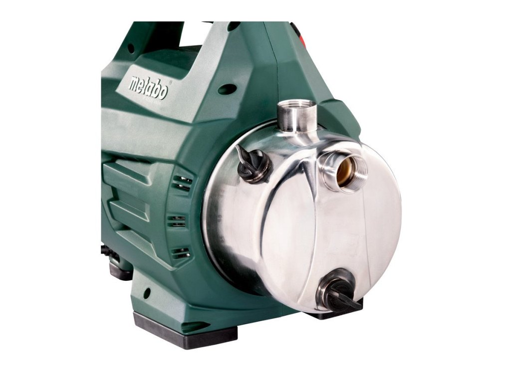 Na zavlažovanie záhrad a čerpanie podzemnej vody, ako aj na dopravu, čerpanie a cirkuláciu čistej vody. Bezúdržbový kondenzátorový motor. Ochrana proti preťaženiu: chráni motor pred prehriatím. Vysokokvalitný systém mechanického tesnenia pre dlhú životnosť. Odolné puzdro čerpadla z nehrdzavejúcej ocele. Otvor na plnenie vodou na jednoduché uvedenie čerpadla do prevádzky. Skrutka na vypúšťanie vody na ochranu pred mrazom, montáž a demontáž bez použitia náradia. Pogumované nožičky na tichú prevádzku bez vibrácií. Ergonomická rukoväť na pohodlné prenášanie. Na zavlažovanie záhrad s 1 až 3 zavlažovačmi. Charakteristické vlastnosti: Menovitý výkon1300 W Maximálne dopravované množstvo4500 l/h Max. výška vypúšťania48 m Max. tlak4,8 bar Max. výška nasávania8 m Vnútorný závit sacieho potrubia 1" Tlaková prípojka vnútorný závit 1" Teleso čerpadlaNerezová oceľ Ochrana IPIP X4 Hnací hriadeľNerezová oceľ Počet obežných kolies1 Rozmery408 x 222 x 303 mm Hmotnosť10,6 kg Dĺžka kábla1,5 m Emisie hluku: Hladina akustického tlaku70 dB(A) Hladina akustického výkonu (LwA)82,2 dB(A) Neistota merania K2,8 dB(A) Rozsah dodávky: Závitová tesniaca páskaDodatočné parametre