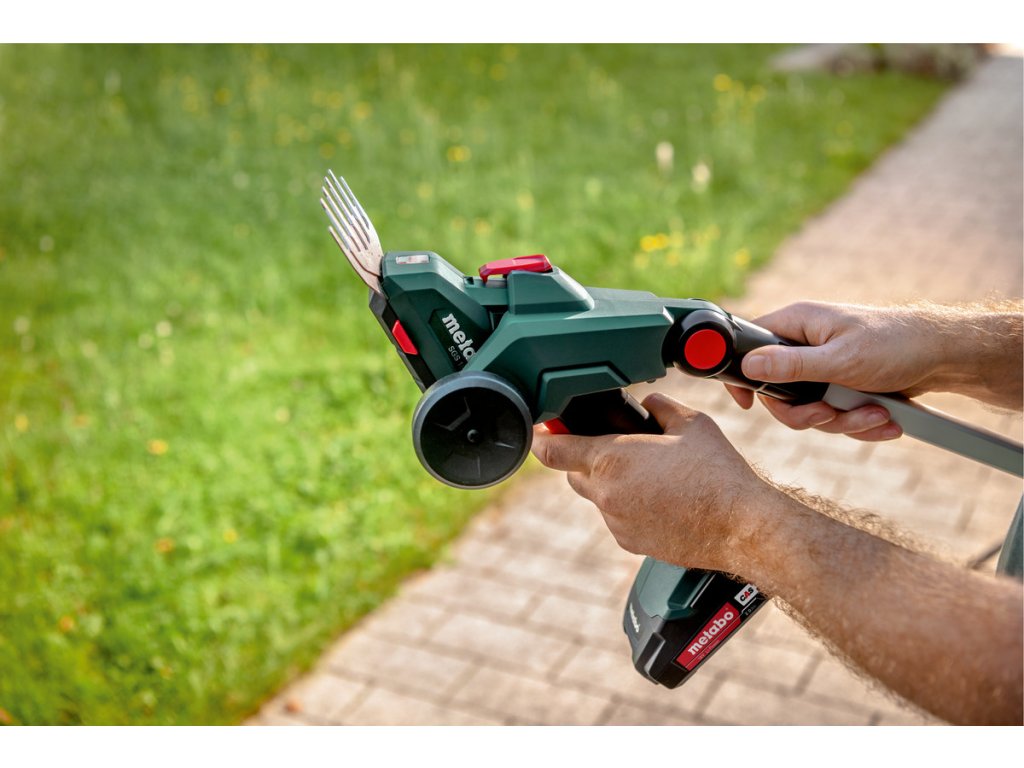 Metabo Quick System: rýchla výmena oboch nožových nástavcov bez výmeny nástroja pre flexibilnú prácu. Najlepšie výsledky rezania vďaka laserom brúseným, diamantom brúseným nožom rukoväť na pohodlné a bezpečné vedenie nôžok na kríky a trávu Stabilná teleskopická tyč na presné zastrihávanie okrajov trávnika šetrné k zádem, dostupná ako príslušenstvo Mnoho značiek, jeden bateriový systém: tento výrobok možno kombinovať so všetkými 18V akumulátormi a nabíjačkami CAS: www.cordless-alliance-system. Úložný kufor, bez akumulátora, bez nabíjačky Technické údaje Napätie batérie: 18 V Dĺžka rezu krovinorezu: 20 cm Hrúbka rezu krovinorezu: 8 mm Šírka kosenia noža na trávu: 11,5 cm Počet rezov pri volnobežných otáčkach: 2300 /min Hmot 71 dB(A) Hladina akustického výkonu (LwA): 78 dB(A) Nejistota merania K: 2,5 dB(A) Hmotnosť vrátane akumulátora: 1,2 kg Voľnobežná rýchlosť: 1,2 m/s2 Nejistota merania K: 1,5 m/s2Dodatočné parametre