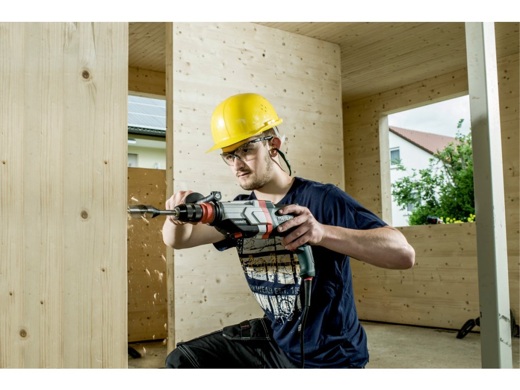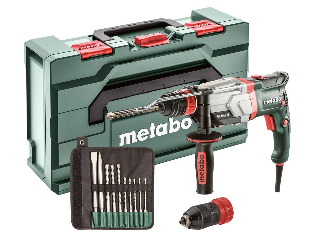 Multifunkčné kladivo so 4 funkciami: vŕtanie s príklepom, dvojrýchlostné vŕtanie a sekanie. Metabo Quick. Plnovlnná elektronika Vario-Tacho-Constamatic (VTC) na prácu pri zodpovedajúcich otáčkach, ktoré zostávajú konštantné aj pri zaťažení. Koliesko na nastavenie prednastavených otáčok a počtu príklepov. Dvojrýchlostná prevodovka: dve rýchlosti na efektívne vŕtanie do dreva a kovu. Motor Metabo Marathon s ochranou proti prachu pre dlhú životnosť. Vysoko výkonný elektropneumatický príklepový mechanizmus precízne uložený v kryte z hliníkovej sliatiny: dlhá životnosť a robustnosť. Dokonalá ergonomia vďaka ťažisku v blízkosti ruky a optimálnemu obrysu rukoväte. Nízko položený spínač chránený proti poškodeniu a prachu. Metabo S-automatická bezpečnostná spojka: mechanické odpojenie pohonu pri zablokovaní vŕtačky pre bezpečnú prácu. Ochrana proti opätovnému spusteniu: zabraňuje neúmyselnému opätovnému spusteniu po prerušení napájania. Spínač s možnosťou blokovania pre pohodlnú prácu počas dlhšieho používania. Kabel s otočným kĺbom pre optimálnu volnosť pohybu pri práci. S metaBOXom, inteligentným riešením na prepravu a skladovanie. Parametre: Max. energia jedného zdvihu (EPTA): 3,4 J Max. počet úderov: 4500 /min Menovitý výkon: 1100 W Priemer vrtania do betónu príklepovým vrtaním: 28 mm Priemer vrtania do muriva pomocou vrtákov: 68 mm Priemer vrtáka do ocele: 13 / 6 mm Priemer vrtania do mäkkého dreva: 35 / 0 0 - 2100 / min Otáčky pri menovitom zaťažení: 900 / 2100 / min Upínanie nástrojov: SDS-plus Priemer upínacieho hrdla: 50 mm Hmotnosť bez napájacieho kábla: 3,3 kg Dĺžka kábla: 4 m Vibrácia: Vŕtanie do kovu: 4,3 m Vŕtanie do betónu s nárazom: 13,5 m/s2 Neistota merania K: 1,5 m/s2 Príklep: 7,2 m/s2 Nejistota merania K: 1,5 m/s2 Emisie hluku: Hladina akustického tlaku: 90 dB(A) Hladina akust merania K: 3 dB(A) Rozsah dodávky: Rázové skľučovadlo pre náradie s koncovkou SDS-Plus Rýchloupínacie skľučovadlo pre nástroje s valcovou stopkou Prídavná pogumovaná rukoväť Hĺbkový doraz MetaBOX 145 L Súprava vrtákov/rozbrusDodatočné parametre