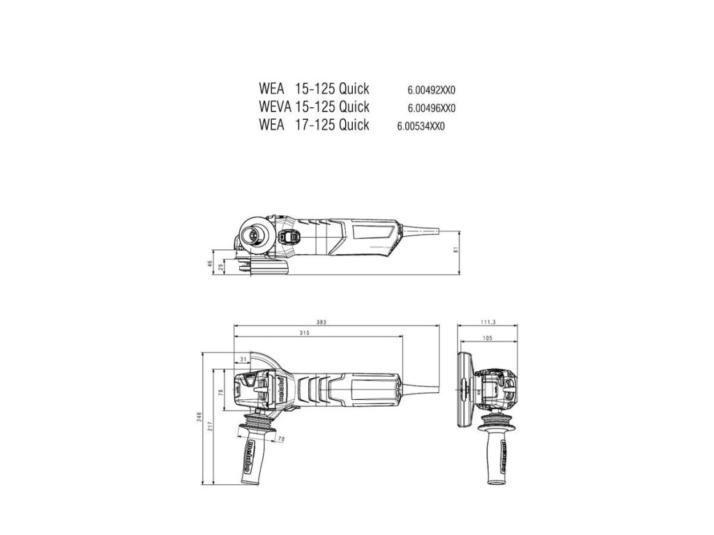 Extrémne dlhá životnosť pre extrémne aplikácie: robustná a výkonná uhlová brúska s reguláciou otáčok a maximálnym výkonom vo svojej triede pre rýchlu prácu. Motor Metabo Marathon s patentovanou ochranou proti prachu, až o 20 % vyššou odolnosťou proti preťaženiu a o 50 % vyšším krútiacim momentom. Plnovlnná elektronika Vario-Tacho-Constamatic (VTC) s regulačným kolieskom na prácu s vhodnými otáčkami, ktoré zostávajú konštantné aj pri zaťažení. Rýchla výmena kotúča bez použitia náradia jediným stlačením tlačidla vďaka systému M-Quick od spoločnosti Metabo. Beznástrojovo nastaviteľný ochranný kryt; odolný proti skrúteniu. Prídavná rukoväť Metabo VibraTech (MVT) s minimálnymi vibráciami. Bezpečnostná mechanická spojka Metabo S-automatic: Minimalizuje spätný náraz pri zablokovaní noža na najnižšej úrovni na trhu - pre maximálnu ochranu používateľa a nepretržitú plynulú prevádzku. Elektronická ochrana proti preťaženiu, ochrana proti pomalému rozbehu a opätovnému spusteniu. Ľahko nastaviteľný kryt prevodovky otočný v 90° krokoch pre ľavostrannú prevádzku alebo pre rezanie. Automatické vypnutie stroja pri opotrebovaní uhlíkov na ochranu motora. Vlastnosti: - Funkcie, ktoré sa vyznačujú vysokou odolnosťou proti poškodeniu: Priemer noža 125 mm. Menovitý výkon 1550 W Výstupný výkon 940 W Voľnobežné otáčky 2800 - 11000 /min Otáčky pri menovitom zaťažení 11000 /min Krútiaci moment 3,5 Nm Závity vretena M 14 Hmotnosť bez napájacieho kábla 2,5 kg Dĺžka kábla 4 m Vibrácie Povrchové brúsenie 6 m/s2 Neistota merania K 1,5 m/s2 Brúsenie s brúsnym kotúčom 3,6 m/s2 Neistota merania K 1,5 m/s2 Emisie hluku Hladina akustického tlaku 93 dB(A) Hladina akustického výkonu (LwA) 104 dB(A) Neistota merania K 3 dB(A) Dodávané príslušenstvo Ochranný kryt Podporná príruba Upínacia matica M-Quick Prídavná rukoväť Metabo VibraTech (MVT)Dodatočné parametre