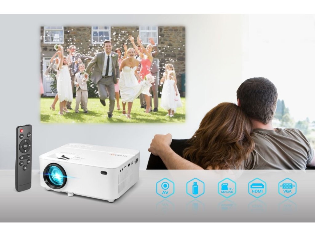 Funkcia FullHD 1080p projektor s výkonnou 1800 lumenovou LED lampou (100 ANSI lumenov) Natívne rozlišení: 800×480 Mini dátový projektor s prehrávačom médií Veľkosť projekcie od 32" do 176" Vstavané 2W stereo reproduktory Manuálne Možnosť pripojenia k počítaču, notebooku, tabletu, smartfónu a herným konzolám prostredníctvom AV, VGA alebo HDMI Prehráva video, fotografie a zvukové súbory z USB, MicroSD alebo externého disku. Môže sa používať s diaľkovým ovládaním Špecifikácia: LCD TFT projekčný systém / nízka hlučnosť / nízky únik svetla Viacčipový optický objektív s kompozitnou povrchovou úpravou Projekčná veľkosť/vzdialenosť: 32"-176" / 1-5m Výkon projektora / jas: 50 W / 180 Kontrastní pomer / farby zobrazenia: 2000:1 / 16,7M Teplota farieb / životnosť lampy: 9000K / 40000 hodín Korekcia: optická ±15° Frekvencia zvuku: 2x 2W Hlučnosť ventilátora: 54 dB max. AV vstup (1.OVp-p +/ (800×600@60Hz, 1024×768@60Hz) Vstup HDMI (480i, 480p, 576i, 720p, 1080i, 1080p), Natívne rozlišovanie: 800×480 Výstup na sluchátka: áno RM, AVI, RMVB, MOV, MKV, DIVX, VOB, M-JPEG Hudba: WMA, MP3, M4A (AAC) Fotografia: JPEG, BMP, PNG USB max. 128 GB / karta MicroSD max. 128 GB (min. Class6) (nie je súčasťou dodávky) Externý Napájanie AC 100V-240V 50/60Hz Hmotnosť/rozmery: 1014 g / (D) 20,4 x (Š) 15,0 x (V) 8,6 cm Kompatibilita: Digitálny fotoaparát, TV box, PC / notebook, smartfón, herná konzola, zosilňovač. Obsah balenia: Technaxx® Mini FullHD LED Beamer TX-113 1x AV kábel, 1x diaľkové ovládanie 1x HDMI kábel 1x napájací kábel, návod na obsluhuDodatočné parametre