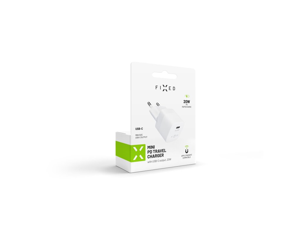 Miniatúrna sieťová nabíjačka FIXED Mini novej generácie s výkonom 20 W sa postará o doplnenie energie vo vašom modernom smartfóne, tablete alebo inej elektronike. Vďaka portu USB-C s podporou technológie Power Delivery 3.0 dokáže doplniť energiu pre kompatibilné zariadenia s výkonom až 20 W, čím výrazne zkracuje čas nabíjania v porovnaní s tradičnými nabíjacími adaptérmi. Je preto ideálny na nabíjanie najnovších smartfónov a tabletov Apple a ako doplnok k nabíjačke MagSafe. Telo nabíjačky je naozaj miniatúrne, ľahko sa zmestí aj na ťažko prístupné zásuvky za nábytkom a podobne. Nabíjanie je veľmi bezpečné a nehrozí žiadne riziko prehriatia alebo prepätia. S nabíjacím adaptérom FIXED sa už nebudete obávať, že sa vám vybije mobilné zariadenie, či už ste doma, v kancelárii alebo na cestách. Funkcie: - nabíjačka na batérie, - nabíjačka na batérie, - nabíjačka na batérie, - nabíjačka na batérie, - nabíjačka na batérie, - nabíjačka na batérie: - mini nabíjací adaptér s podporou rýchleho nabíjania - Port USB-C s podporou technológie Power Delivery 3.0 - Celkový výkon 20 W - Vhodný pre najnovšie nabíjacie adaptéry MagSafe - kompaktné rozmery - určený pre zásuvky EÚ - Výrobok splňuje všetky právne a bezpečnostné normy EÚ - Rozmery 6,5 x 3 x 3 cm (so zástrčkou) Technické údaje: - vstup: AC 100-240 V, 50/60 Hz, 0,8 A - výstup: USB-C DC 5A 12/1,67A, spolu 20WDodatočné parametre