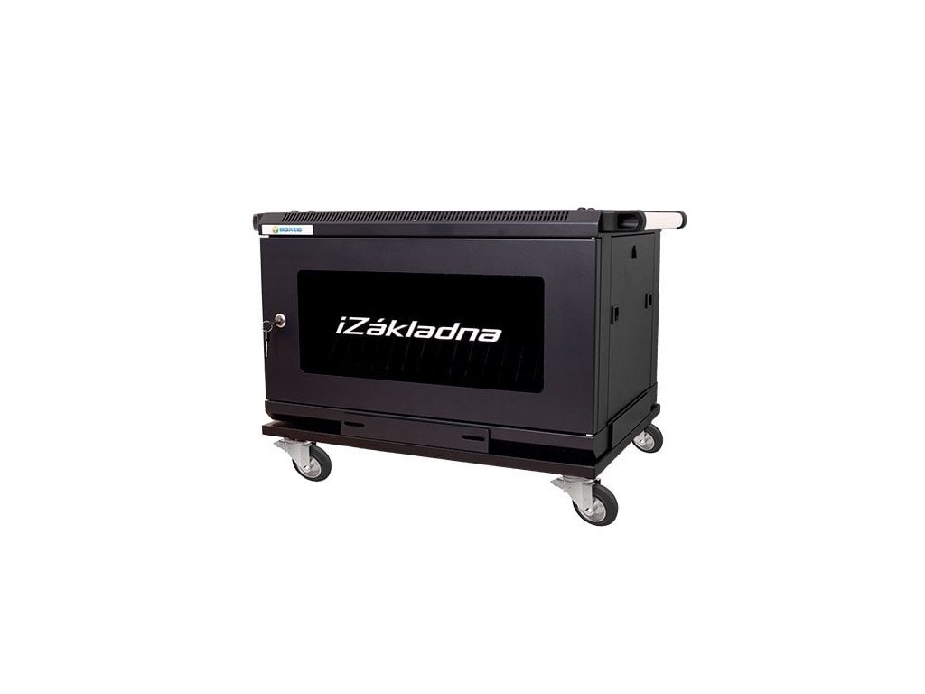Mobilná základňa umožňuje hromadné nabíjanie 10 notebookov do veľkosti 15,6". iBase 10 ponúka 10 samostatných polôh, manévrovacie príslušenstvo (rukoväte + kolieska). Podpora zariadení so systémami Windows, Android, Chrome OS. iBase možno uzamknúť. Vlastnosti: - je vybavená funkciami, ktoré sú súčasťou balenia: Robustná uzamykateľná konštrukcia poskytuje bezpečné uloženie a hromadné nabíjanie až 10 ks akýchkoľvek notebookov s veľkosťou do 15,6". Voliteľne možno iBasket dodať so sekvenčným prepínaním napájania pre jednotlivé napájacie lišty. Ako voliteľné príslušenstvo možno doplniť aj rukoväte a podvozok s otočnými brzdenými kolieskami s gumovou obručou, ktorá nezanecháva stopy. Typ zariadenia Laptop Veľkosť zariadenia 11" - 15,6" Počet nabíjaných zariadení 10 Hromadné nabíjanie z originálnych adaptérov (nie sú súčasťou dodávky) Prepäťová ochrana ÁNO Úložný obal: ÁNO (šírka pozície 25 mm) Farba Čierna Možnosť uzamknutia ÁNO Rozmery 600 x 600 x 501 mm (šírka x hĺbka x výška) bez koliesok Hmotnosť 26 kg Súčasť dodávky rukoväte + kolieska Voliteľné príslušenstvo Sekvenčné spínanieDodatočné parametre