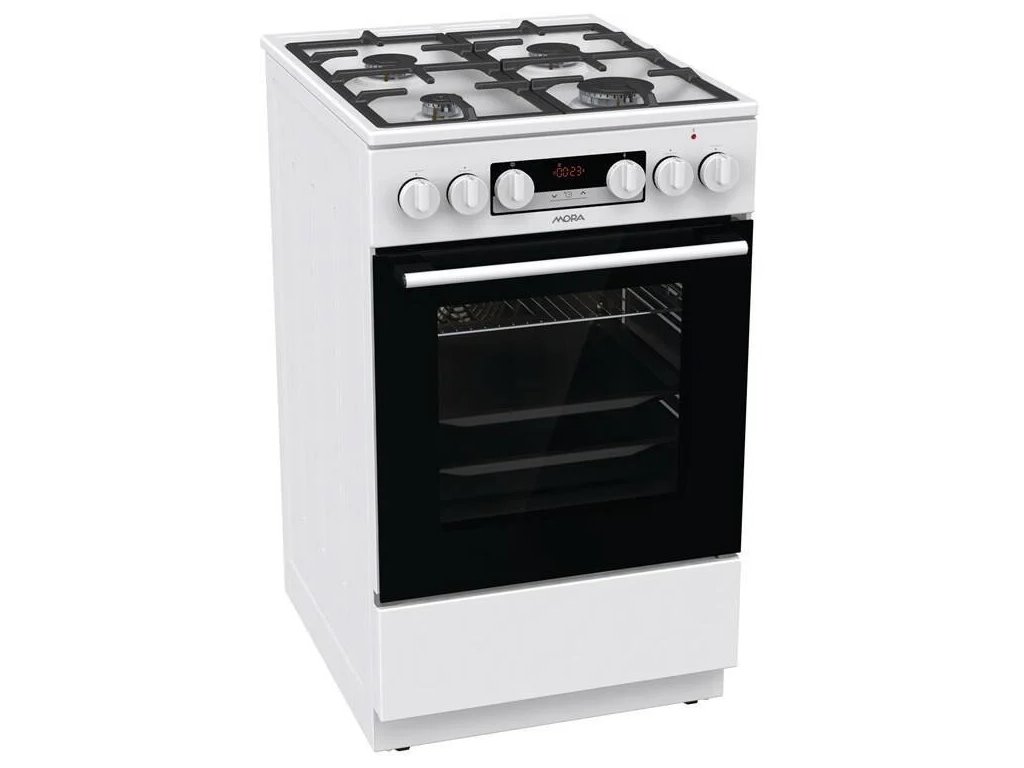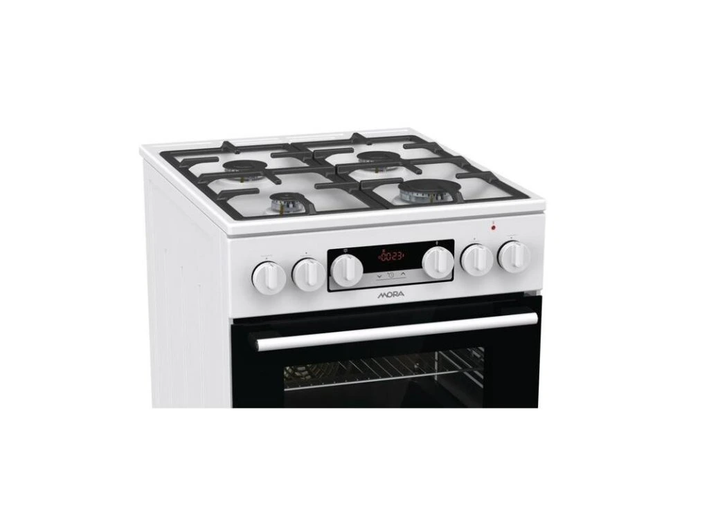 Biely kombinovaný sporák Mora K 7668 BW s multifunkčnou rúrou s objemom 70 litrov vás prekvapí svojou úspornou energetickou triedou A. Plynové horáky s poistkami STOP GAS a integrovaným zapaľovaním sú kryté dvojdielnou mriežkou STABIL PLUS, ktorá zabezpečuje bezpečný pohyb riadu vo všetkých smeroch. Vďaka digitálnemu časovému spínaču s hodinami už nikdy nepripálite obed, táto praktická funkcia vám prinesie veľa výhod.Možno nastaviť odložený začiatok a koniec varenia, len koniec varenia a minútku, samozrejme, aktuálny čas. Okrem toho je rúra vybavená 11 programami pečenia, ktoré sú navrhnuté tak, aby presne vyhovovali potrebám konkrétnych jedál. Môžete napríklad pripraviť lahodnú pizzu ako v talianskej reštaurácii (program Pizza), pomaly piecť pečienku a efektívne rozmrazovať hotové porcie jedla. Ak máte radi hranolky alebo kuracie nugetky, ale nedoprajete si ich tak často kvôli ich vysokej kalorickej hodnote, môžete vyskúšať aj program na teplovzdušné vyprážanie bez tuku.