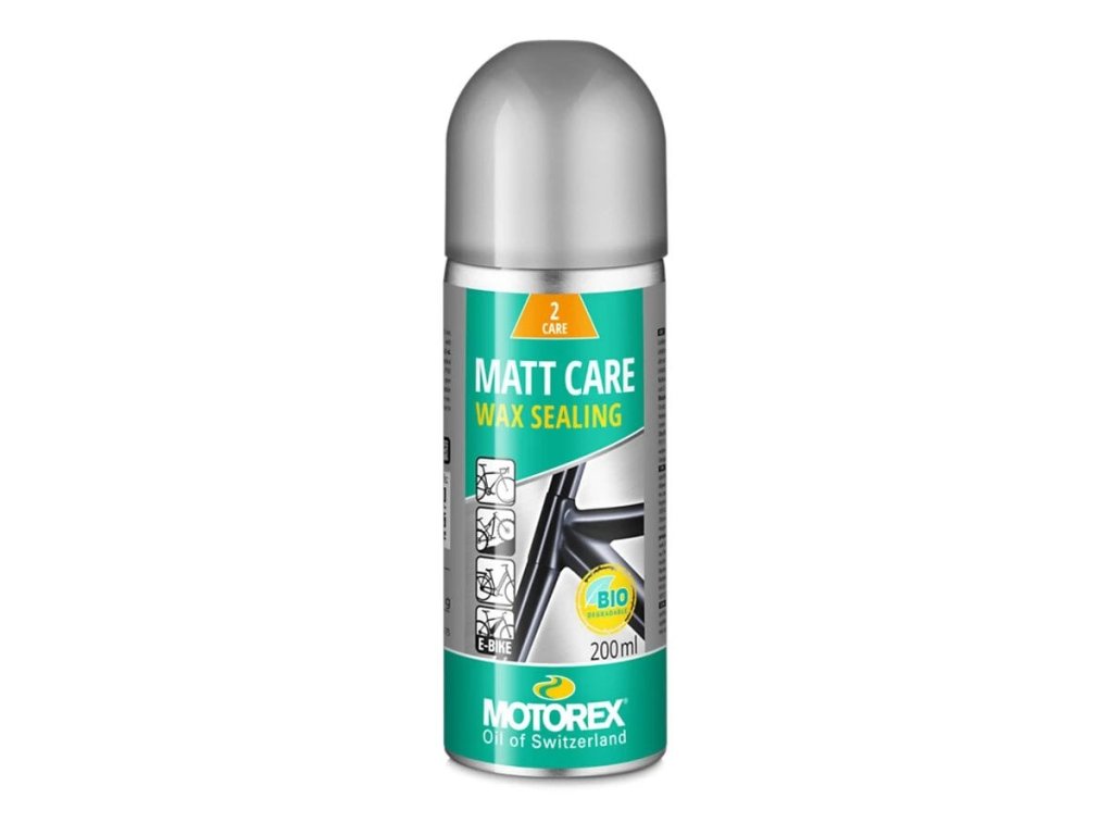 BIKE MATT CARE od spoločnosti MOTOREX je špeciálny ochranný sprej na lak a plast vhodný ako záverečná úprava po čistení motocykla, ktorý zanecháva na povrchu matný efekt. Má antistatické vlastnosti a po aplikácii má perleťový efekt. Je ideálny napríklad na modely vystavované na veľtrhoch alebo v showroomoch. Výrobok bol testovaný v pretekárskom prostredí. Použitie. Nie je vhodný na lesklé laky, pneumatiky, kľučky, sedlá atď. Vyhnite sa kontaktu s brzdovými kotúčmi. Nepoužívajte na slnečnom svetle. V prípade pochybností najprv vyskúšajte na nenápadnom mieste.Dodatočné parametre