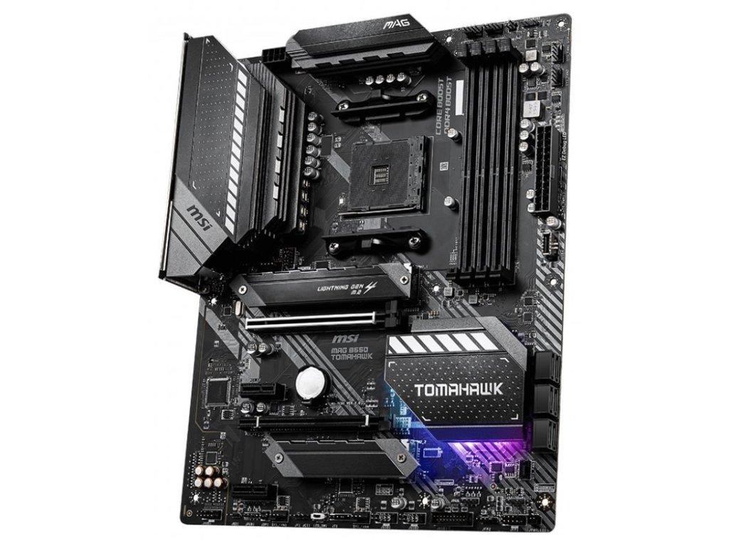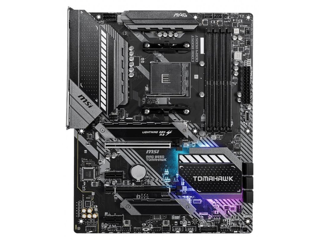 MSI MAG B550 TOMAHAWK Doska je vybavená grafickými výstupmi pre použitie s procesormi s integrovaným grafickým jadrom. Základná doska neobsahuje grafickú kartu a bez použitia príslušného procesora budú tieto výstupy nefunkčné. CPU Podpora procesorov AMD Ryzen 3. generácie a vyšších (socket AM4) Čipová súprava AMD B550 Pamäť 4 x pamäťový slot DDR4, podpora až 128 GB Podpora DDR4 1866/ 2133/ 2400/ 2667/ 2800/ 2933/ 3000/ 3066/ 3200 MHz (JEDEC) Podpora DDR4 2667/ 2800/ 2933/ 3000/ 3066/ 3200/ 3466/ 3600/ 3733/ 3866/ 4000/ 4133/ 4266/ 4400/ 4533/ 4600/ 4733/ 4800/ 4866/ 5000/ 5100+ MHz (režim A-XMP OC) Dvojkanálová pamäťová architektúra Podpora modulov UDIMM bez vyrovnávacej pamäte, ktoré nie sú typu ECC Podpora ECC UDIMM, bez vyrovnávacej pamäte (režim bez ECC) Sloty 1 x slot PCIe 4.0/3.0 x16 1 x slot PCIe 3.0 x16 (podporuje režim x4) 2 x slot PCIe 3.0 x1 Grafika 1 x port HDMI s podporou maximálneho rozlíšenia 4096 x 2160 pri 24 Hz 1 x DisplayPort, podporuje max. rozlíšenie 4096 x 2160 pri 60 Hz Multi-GPU Podpora 2-cestnej technológie AMD CrossFire Úložisko Čipová súprava AMD B550 6 x port SATA 6 Gb/s 1 x slot M.2, M Key, pre disky 2242/2260/2280 (režim PCIe 3.0 x4) PROCESOR AMD 1 x slot M.2, M Key, pre disky 2242/2260/2280/22110 (režim PCIe 4.0/3.0 x4 a SATA) Podpora RAID 0, RAID 1 a RAID 10 pre disky SATA Podpora RAID 0 a RAID 1 pre disky M.2 PCIe USB Čipová súprava AMD B550 1 x port USB 3.2 Gen1 typu C prístupný cez interný konektor USB 2 x port USB 3.2 Gen1 (USB 3.0) dostupný cez interný konektor USB 6 x port USB 2.0 (2 porty na zadnom paneli, 4 porty dostupné cez interné konektory USB) PROCESOR AMD 1 x port USB 3.2 Gen2 typu C na zadnom paneli 1 x port USB 3.2 Gen2 (USB 3.1 Gen2) na zadnom paneli 2 x port USB 3.2 Gen1 (USB 3.0) na zadnom paneli Zvuk Kodek Realtek ALC1200 7.1-kanálový zvuk s vysokým rozlíšením Podpora výstupu S/PDIF LAN 1 x Realtek RTL8111H Gigabitový radič LAN 1 x Realtek RTL8125B 2,5Gigabitový radič LAN Interné konektory 1 x 24-pinový hlavný napájací konektor ATX 1 x 8-pinový napájací konektor ATX 12V 6 x konektor SATA 6 Gb/s 2 x slot M.2, M Key 1 x konektor USB 3.2 Gen1 typu C 1 x konektor USB 3.2 Gen1 (USB 3.0) (podporuje 2 x port USB 3.2 Gen1) 2 x konektor USB 2.0 (podporuje 4 x port USB 2.0) 1 x 4-pinový konektor ventilátora CPU 1 x 4-pinový konektor ventilátora vodného chladenia 6 x 4-pinový konektor systémového ventilátora 1 x konektor modulu TPM 1 x audio konektor na prednom paneli 2 x konektor systémového panela 1 x konektor na detekciu otvoreného krytu 2 x 4-pinový konektor RGB LED 2 x 3-pinový konektor RAINBOW LED 1 x konektor Clear CMOS Konektory na zadnom paneli 1 x kombinovaný port PS/2 pre klávesnicu a myš 1 x DisplayPort 1 x HDMI 2 x USB 2.0 2 x USB 3.2 Gen1 (USB 3.0) 1 x USB 3.2 Gen2 (USB 3.1 Gen2) 1 x USB 3.2 Gen2 Type-C 2 x RJ-45 1 x tlačidlo Flash BIOS 1 x optický výstup S/PDIF 5 x audio konektor Rozmery 30,5 x 24,4 cm Formát ATXDodatočné parametre