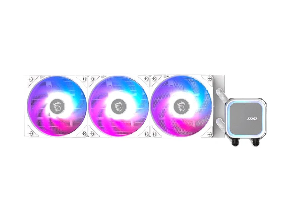 MSI MAG CoreLiquid A13 360 WHITE Vodný chladič určený na chladenie širokého spektra procesorov. Vyznačuje sa vysokou kvalitou, výkonom a spoľahlivosťou. Má tri 120 mm veľké ventilátory s ARGB podsvietením a čerpadlom. Odolné opletené hadice sú dlhé 390 mm a vďaka dostatočne širokému priemeru zabezpečujú plynulý prietok chladiacej kapaliny. ZÁKLADNÉ ŠPECIFIKÁCIE Označenie chladiča: pre CPU Typ chladiča: vodný Podporované sockety: chladič s chladičom: Intel: LGA 1700, 1851 AMD: AM5, AM4 Veľkosť ventilátora: 3 × 120 mm Rýchlosť ventilátora: 500 - 1000x300. Dĺžka hadice: 390 mm Rozmery: 394 × 119,6 × 27 mm Rozmery chladiaceho bloku: 70,9 × 69,3 × 56,98 mm Farba: bielaDodatočné parametre
