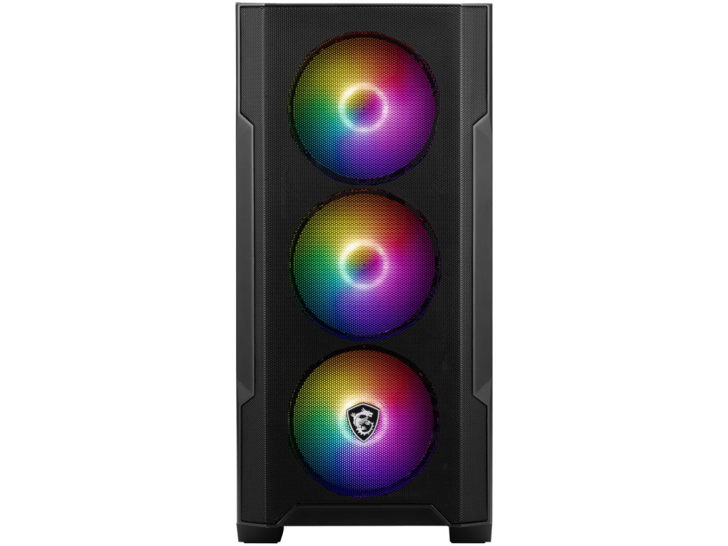 MSI MAG FORGE M100R Kvalitná počítačová skriňa typu Micro Tower ponúka dve 2,5", jednu 2,5"/3,5" a jednu 3,5" pozíciu pre SSD a pevné disky. Na hornom paneli sa nachádzajú dva porty USB 2.0, jeden port USB 3.0, výstup na sluchátka a zvukový vstup pre mikrofón. Je vybavená štyrmi 120 mm ventilátormi s ARGB podsvietením, ktoré spolu s perforovaným predným panelom zabezpečujú dostatočné prúdenie vzduchu. Skriňa má dostatok priestoru pre chladič procesora s výškou do 160 mm a grafickú kartu s dĺžkou do 300 mm. Skriňa má priehľadnú bočnicu a dodáva sa bez zdroja napájania. Dômyselná konštrukcia umožňuje pohodlné umiestnenie až 240 mm dlhého výmenníka tepla vodného chladenia na prednej a hornej strane. Súčasťou skrine je aj magnetický prachový filter. ZÁKLADNÉ ŠPECIFIKÁCIE Konštrukcia skrine: Micro Tower Vnútorné pozície: 2×2,5", 1×2,5"/3,5", 1×3,5" Kompatibilita so základnými doskami: Micro ATX, Mini ITX Napájanie: bez zdroja Konektory na hornom paneli: 2× 2 . 3.0), 1× výstup na sluchátka, 1× vstup pre mikrofón Rozmery: 423 × 388 × 200 mm Farba: čiernaDodatočné parametre
