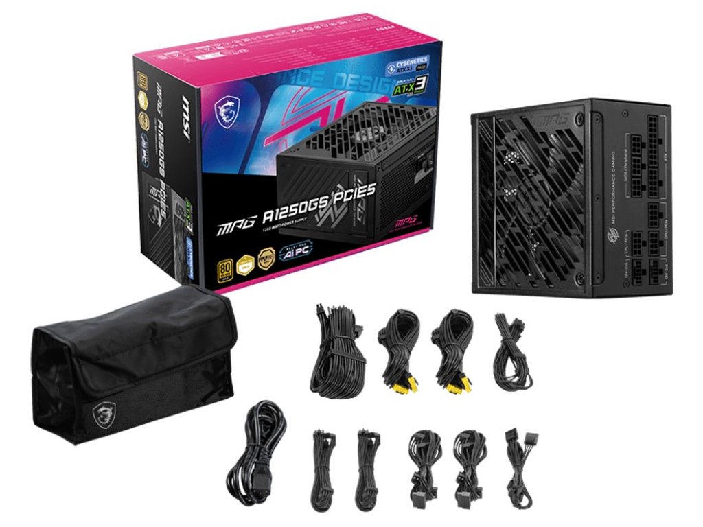 MSI MPG A1250GS PCIE5 – jiný level napájení Napájecí zdroj MSI MPG A1250GS PCIE5 je určen pro spolehlivý provoz moderních PC systémů, které jsou postaveny na nejnovějších procesorech a využívají mimořádně výkonné grafické karty NVIDIA série 50. Zdroj tak s přehledem utáhne počítače, které se zaměřují na velmi náročné výpočetní úkony v oblasti grafiky, multimédií nebo třeba umělé inteligence. Napájecí zdroj MSI MPG A1250GS PCIE5 disponuje konektorem 12V-2x6, který je připraven pro nejnáročnější grafické karty a nikdy tak nepřipustí jakékoli lagování, sekání nebo jiné grafické nedostatky. Díky certifikaci 80PLUS Gold máte jistotu, že zdroj bude efektivně pracovat s energií a zajistí optimální energetickou účinnost. Díky tomu pak přináší nižší spotřebu energie a dokáže perfektně pracovat i v plné zátěži. Pokročilý tepelný design je navržen s ohledem na nízkou provozní hladinu hluku a celkově tichý chod. Napájecí zdroj MSI MPG A1250GS PCIE5 je osazen 135mm ventilátorem s fluidním dynamickým ložiskem, což přispívá k nízké úrovni hluku a také delší životnosti. Napájecí zdroj o výkonu 1250 W je osazen tichým a přitom výkonným 135 mm velkým ventilátorem s FDB ložiskem. Zdroj splňuje certifikaci 80PLUS Gold, standard ATX 3.1 a má odpojitelné kabely. ZÁKLADNÍ SPECIFIKACE Výkon: 1250 W Velikost ventilátoru: 135 mm Certifikace: 80PLUS Gold Napájecí konektory: 1× ATX 20+4pin, 2× EPS 4+4pin, 1× PCIe 6+2pin, 2× PCIe 12+4pin (12V-2x6), 8× SATA, 4× Molex Rozměry: 150 × 150 × 86 mm Po uplynutí záruční doby, která je uvedena na dodacím listu, nabízí na tento produkt společnost MSI po dobu 7 let bezplatnou opravu ve svém EU servisním středisku v Polsku. Registraci zakázky lze provést na webových stránkách společnosti MSI https://cz.msi.com/support/. Provedení bezplatné opravy je podmíněno dostupností náhradních dílů a nevztahuje se na poškození způsobené uživatelem, případně zanedbáním údržby.Dodatočné parametre