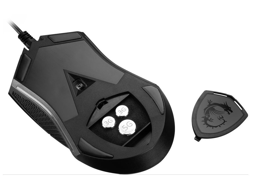 MSI SPOJKA GM08 Herná drátová myš s červeným podsvietením a optickým senzorom PAW-3519 s nastaviteľným rozlišením až do 4200 dpi. Vysokokvalitné spínače vydržia viac ako 10 miliónov kliknutí. Hmotnosť možno nastaviť pomocou troch priložených závaží s celkovou hmotnosťou 11 g. Pripojenie sa uskutočňuje prostredníctvom 1,8 m kábla USB. ZÁKLADNÉ ŠPECIFIKÁCIE Typ myši: optická Počet tlačidiel: 6 Rozlíšenie: 200/400/800/1600/3200/4200 dpi Rozhranie: USB 2.0 Dĺžka kábla: 1,8 m Rozmery: 128 x 68,5 závažie) Farba: čiernaDodatočné parametre