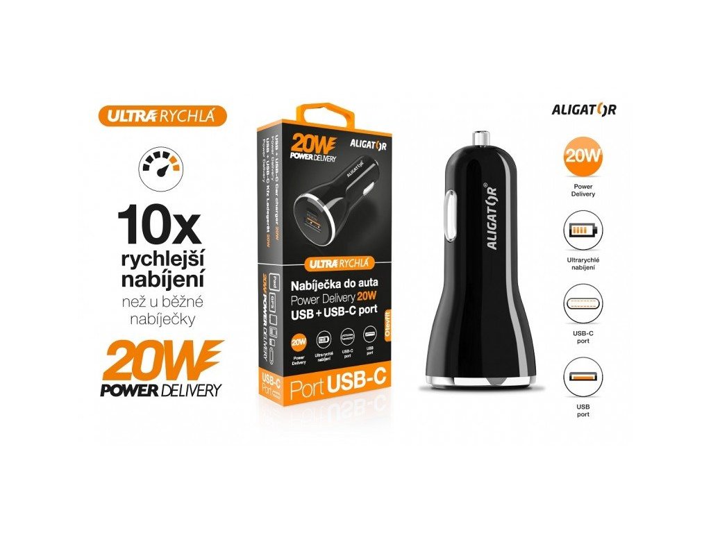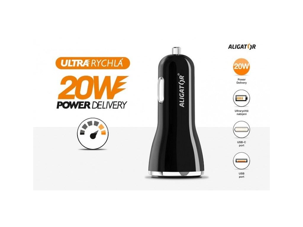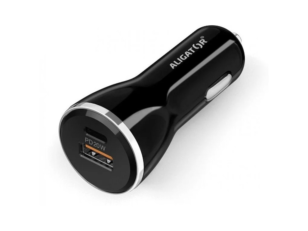 Výkonný a SMARTInteligentná nabíjačka do auta ALIGATOR Power Delivery 20 W, USB-C + USB-A