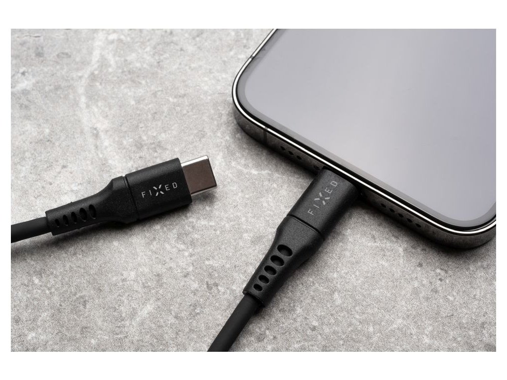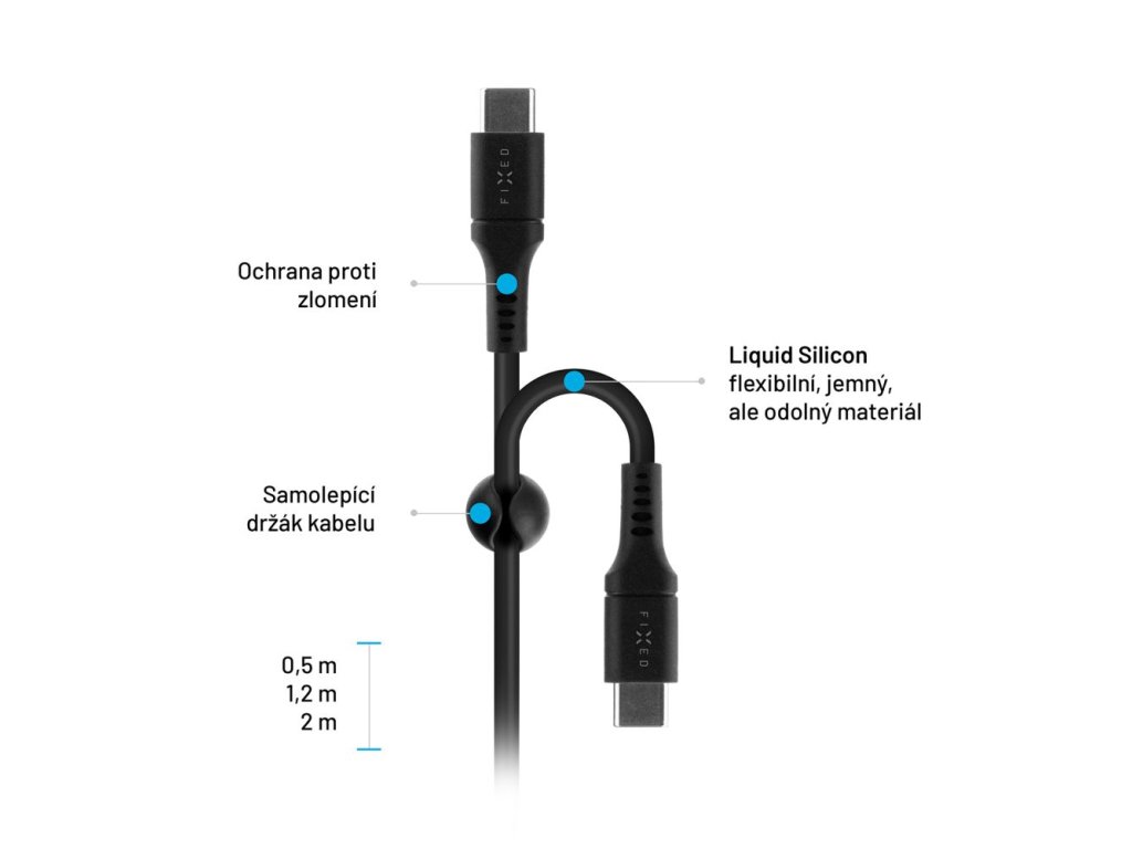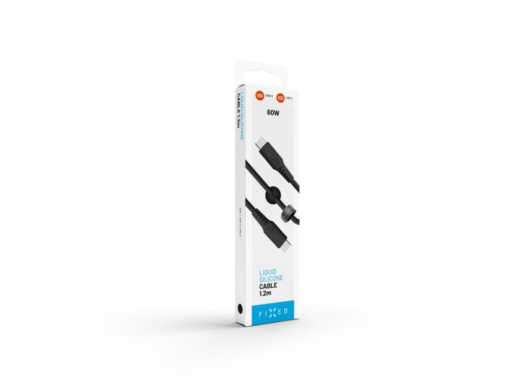 Nabíjací a dátový kábel FIXED Liquid Silicone s konektormi USB-C/USB-C a podporou PD, 1,2 m, USB 2.0, 60 W, čierny