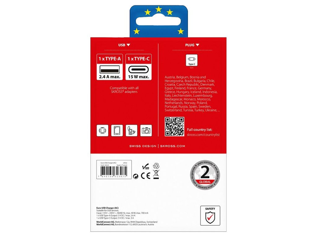 Nabíjací adaptér SKROSS USB A+C EU, 27 W, typ C