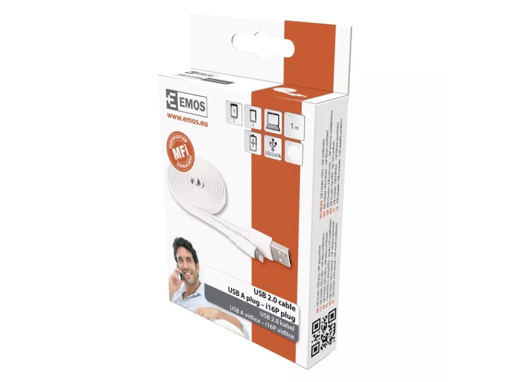 Špičkový kábel s certifikáciou MFI pre iPhone. Najdôležitejšie parametre farba biela dĺžka 1 m konektory vidlica A - vidlica i16P materiál PVC použitie na nabíjanie/dáta USB verzia 2.0 Ďalšie parametre Rýchlosť prenosu dát 480 Mbit/s (High Speed) predajné balenie 1 ks, krabicaDodatočné parametre