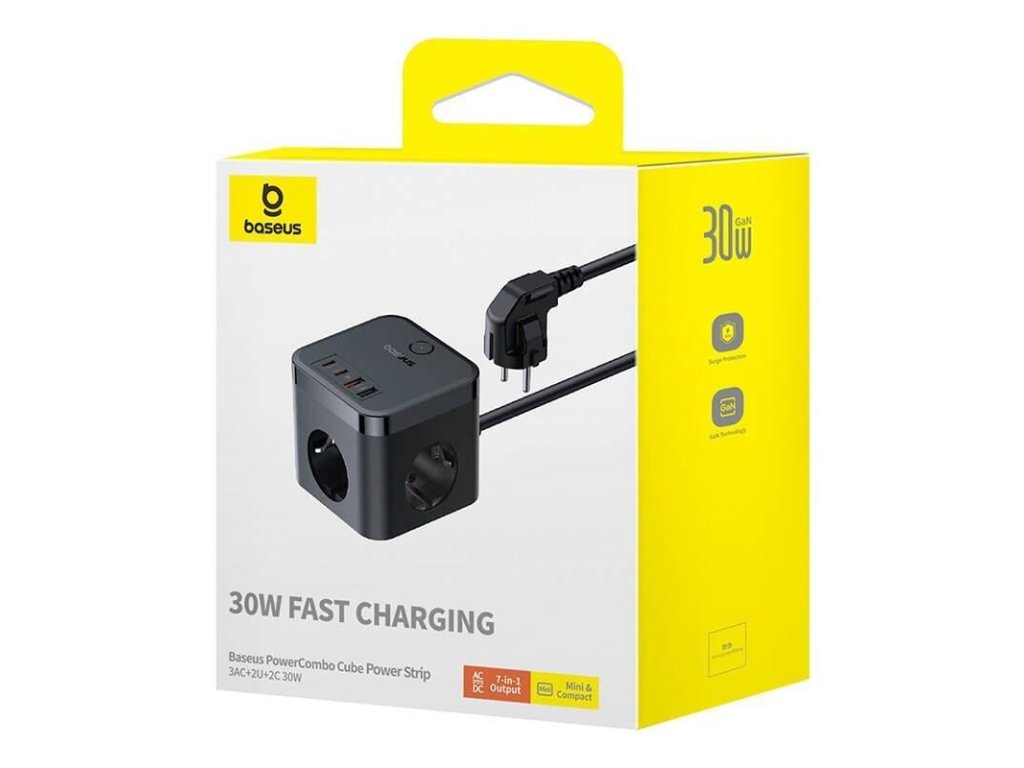 Nabíjacia stanica Baseus PowerCombo Cube 30W 3x zásuvka, 2xUSB, 2xUSB-C čierna