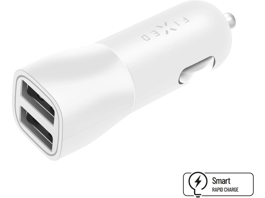 Nabíjačka do auta FIXED s výstupom 2xUSB, 15W Smart Rapid Charge, biela