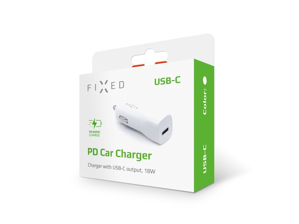 Nabíjačka do auta FIXED s výstupom USB-C a podporou PD, 18 W, biela