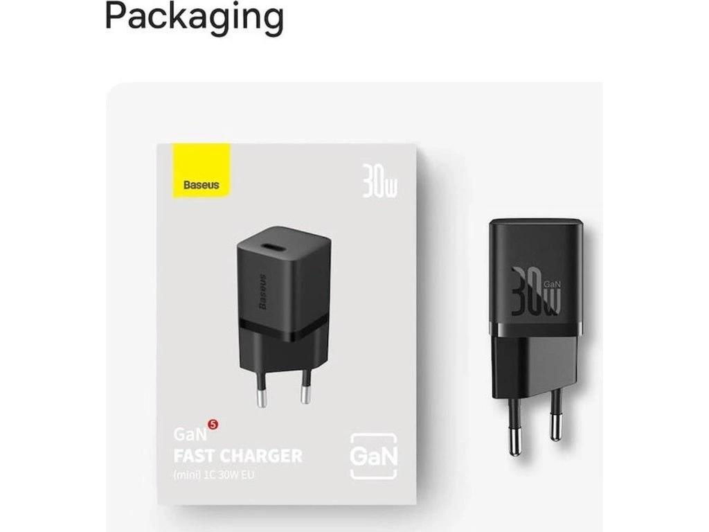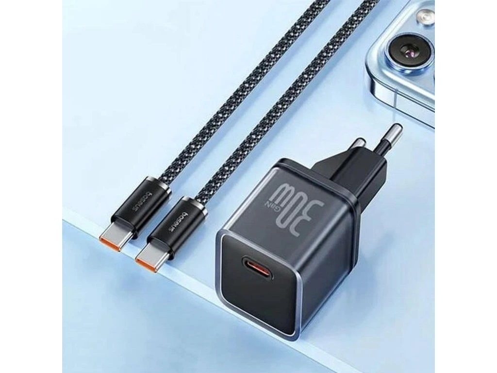 Nabíječka do sítě Baseus GaN5 30W s USB-C/USB-C kabelem 100W 1m, 1xUSB-C černá