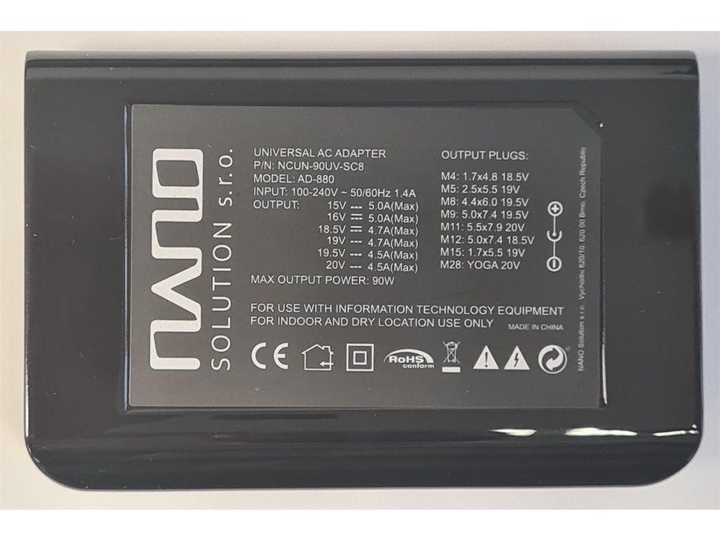 Univerzálny adaptér pre notebook s maximálnym výkonom 65 W. Automatická detekcia napätia podľa konektora. Pre väčšinu notebookov s napájacím napätím 18,5-20 V. Univerzálny napájací adaptér pre notebooky vhodný pre väčšinu modelov dostupných na trhu. Automatické nastavenie výstupného napätia zabezpečuje sada 8 konektorov. Súčasťou balenia je dvojkolíkový sieťový napájací kábel. Použitie konektorov: M4: 1,7 x 4,8 mm, 18,5 V napr. HP, Compaq... M5: 2,5 x 5,5 mm, 19 V, napr. 5,0 x 7,4 mm, 19,5 V, napr. Dell, MSI... M11: 5,5 x 7,9 mm, 20 V, napr. IBM, Lenovo... 20V, napr. Lenovo...Dodatočné parametre