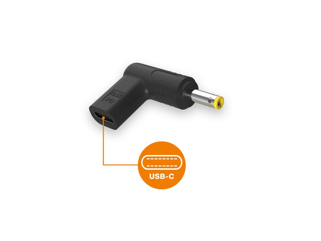 Tento adaptér je ideálnym riešením na nabíjanie vášho notebooku alebo ultrabooku. Má vstup USB-C na pripojenie nabíjačky USB-C. Nabíjačku vždy vyberajte podľa požiadaviek na výkon nabíjaného zariadenia.