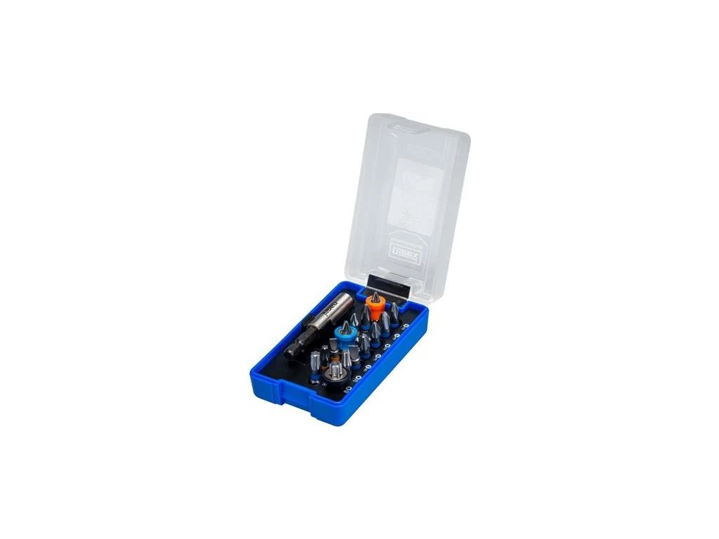 Na ručné a strojové priemyselné použitie Kompatibilný s patentovaným magnetickým držiakom SUPER LOCK podporujúcim funkciu HAND FREE SCREWING Špeciálne tvrdený povrch a jadro z vysoko kvalitnej nástrojovej ocele S2 STEEL Chrómová povrchová úprava Cr PLATING na maximálnu ochranu proti korózii Robustná, odolná kazeta s bezpečnostným zámkom Pevné a stabilné plastové spojivo obsah balenia Bity C6.3 (25 mm) Pozidriv: PZ1; 2× PZ2; PZ3 Philips: PH1; 2× PH2; PH3 Torx: T20; T25; T30; T40 Ploché: F4; F5 1× ORANŽOVÝ SUPERZÁMOK 1× SUPERZÁMOK MODRÝ 1× SUPERZÁMOK ČIERNY 1× magnetický držiak bitov SLIMDodatočné parametre