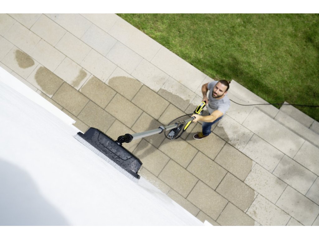 Rovnomerné a vysoko účinné čistenie. Vymeniteľný rám sa dá v závislosti od použitia rýchlo a jednoducho vymeniť. Rám so štetinami na čistenie fasád a stien chráni používateľa pred striekajúcou vodou a zároveň sa dá jemne pohybovať po povrchu. Na čistenie sklenených povrchov, ako sú zimné záhrady, je ideálny rám s podložkou z mikrovlákna, ktorý sa upevňuje pomocou suchého zipsu. Abrazívne vlákna podporujú odstraňovanie nečistôt a zabezpečujú šetrné čistenie povrchov. Vymeniteľný rám Jednoduchá výmena bez použitia náradia na tvrdých alebo citlivých (sklenených) površích. Štyri vysokotlakové trysky Účinné odstraňovanie odolných nečistot a vysoký povrchový výkon. Záves medzi krytom a rámom Nástavec je prispôsobený povrchu, čo vždy umožňuje dobrú kontaktnú plochu. Odnímateľná, umývateľná podložka z mikrovlákna Podložku z mikrovlákna možno prať pri 60 °C. Technické údaje Vláknové textílie 70% polyester; 30 % polyamid Hmotnosť (kg) 0,6 Hmotnosť vrátane obalu (kg) 0,9 Rozmery (dx š xv) (mm) 194 x 338 x 160 OBLASTI POUŽITIA Fasády domov Zimné záhrady Okenné výplne KOMPATIBILNÉ ZARIADENIA Aktuálne produktyDodatočné parametre
