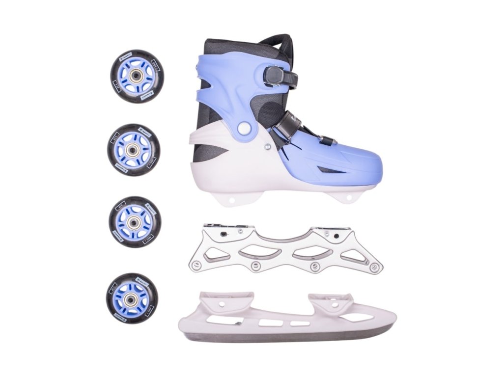 Nastavitelné brusle 4v1 inSPORTline Foursimo jsou pro malé i velké bruslaře – v jednom páru získáte hned čtyři možnosti jízdy! Můžete si užít stabilní quad brusle, klasické inline na asfalt, v zimě přejít na lední brusle s ocelovým nožem, a pro úplné začátečníky je tu i speciální uspořádání 2+1+1, které dodá jistotu při prvních rozjezdech.Pevná plastová skořepina chrání nohu, zatímco měkká vyjímatelná stélka se postará o komfort i při těch nejdelších trénincích. Díky chytrému systému AdjusTouch stačí jedno stisknutí tlačítka a brusle se zvětší až o čtyři velikosti – rostou tak spolu s vámi. O perfektní utažení se stará kombinace MicroLock přezky a suchého zipu, takže stačí dotáhnout a vyrazit.