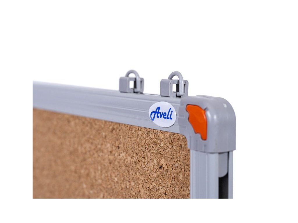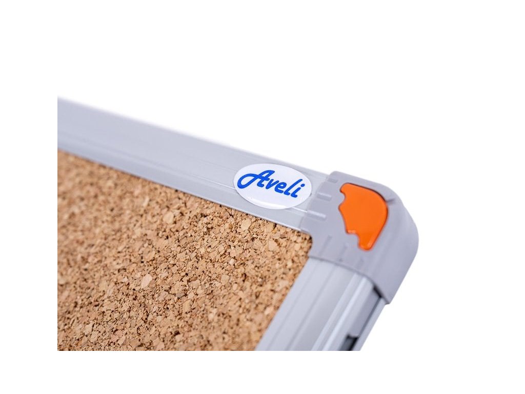 Korková tabuľka s hliníkovým rámom je moderným doplnkom do domácností, kancelárií, škôl alebo obchodov, kde vám pomôže prezentovať dôležité informácie a správy. Rozmery: 60 x 45 cm Povrch: korok Hrúbka desky: 0,8 mm Zesílená zadná strana Rám: hliník Šírka rámu: 2 cm Všetok inštalačný materiál je súčasťou balenia Korková tabuľka AVELI má vysoko odolný povrch proti poškodeniu pri práci s kliešťami a špendlíkami. Má ľahkú konštrukciu a elegantný rám z kvalitného eloxovaného hliníka.Dodatočné parametre