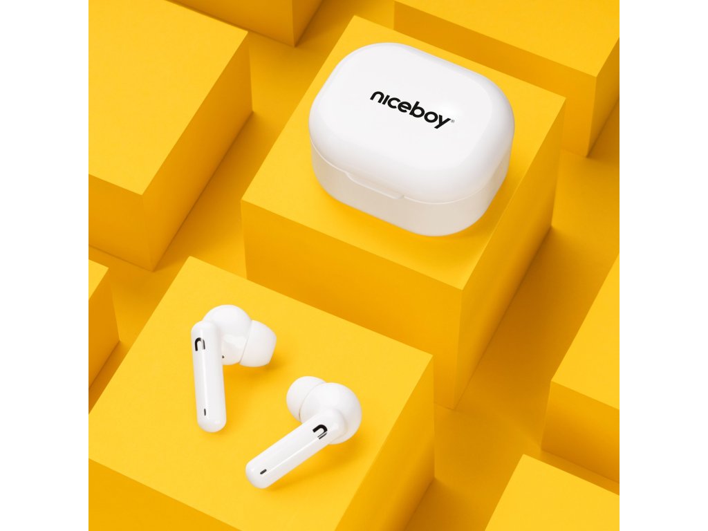 Niceboy HIVE Piny 3 Až 30 hodín hudby a vlastná aplikácia Bezdrôtové sluchátka Niceboy HIVE Pins 3 spĺňajú všetko, čo potrebujete: majú skvelý zvuk, spoľahlivý bezstratový prenos a vďaka zabudovanému mikrofónu s nimi môžete dokonca telefonovať. Novinkou je vlastná mobilná aplikácia Niceboy ION, ktorá otvára ďalšie možnosti sluchadiel na čele s ekvalizérom na úpravu zvuku. Sofistikovaný zvuk a stabilný prenos So sluchátkami HIVE Pins 3 sa nemusíte obávať kompromisov v kvalite zvuku alebo stabilite prenosu. Jeho podpora kodeku AAC zaručuje maximálnu kvalitu zvuku počas prenosu, ktorý si vďaka pokročilému rozhraniu Bluetooth 5.1 zachováva stabilitu bez výpadkov. Telefonické hovory čisté a jednoduché Mikrofón zabudovaný priamo v tele slúchadiel umožňuje pohodlné telefonovanie bez toho, aby ste museli vyťahovať telefón. Všetko sa ovláda jednoduchým dotykom sluchadiel. Sú vybavené vysokokvalitnými mikrofónmi, ktoré zaručujú čistý prenos vášho hlasu. Napájanie na 30 hodín Plne nabité sluchátka dokážem hrať 5 hodín v kuse. Nabíjací box, do ktorého bez problémov zapadnú, im potom poskytne ďalších 25 hodín hudby a počúvania k tomu. A stačí 5 minút v nabíjačke a sluchátka môžu hrať ďalších 1,5 hodiny. Vodotesnosť s krytím IPX4 Slúchadlá majú stupeň krytia IPX4, takže im nevadí déšť ani pot. Nabíjanie cez USB-C Nabíjanie prebieha prostredníctvom kábla s obľúbeným konektorom USB-C. Podpora hlasového asistenta Slúchadlá podporujú ovládanie pomocou hlasových asistentov Siri a Google Assistant. Ešte viac funkcií s mobilnou aplikáciou ION Mobilná aplikácia Niceboy ION rozširuje možnosti slúchadiel HIVE Pins 3. Pomocou ekvalizéra si môžete upraviť dynamiku zvuku podľa svojich predstáv. Aplikácia vám v prípade potreby pomôže nájsť sluchátka, pretože vám na mape ukáže, kde boli naposledy pripojené k telefónu. V neposlednom rade umožňuje prispôsobiť ovládacie prvky alebo podrobne skontrolovať stav batérie jednotlivých sluchátek. Jednoduché dotykové ovládanie Slúchadlá majú intuitívne dotykové ovládanie, ktorým sa ovláda hudba aj telefónne hovory. Hlasitosť, poradie skladieb alebo prijímanie či odmietanie hovorov tak možno zariadiť jednoduchým ťuknutím na telo sluchátek. Rôzne veľkosti náušníkov Súčasťou balenia sú tri veľkosti náušníkov, ktoré padnú do každého ucha. Široký rozsah pripojenia Slúchadlá ponúkajú spoľahlivý bezdrôtový dosah až 10 metrov. Automatické párovanie Stačí raz pripojiť sluchátka k telefónu a pri ďalšom pripojení sa k zariadeniu automaticky spoja. Obsah balenia Slúchadlá Niceboy HIVE Pins 3 Nabíjací box Náhradné náušníky Kabel USB-C Manuál Špecifikácie Bluetooth: 5.1 Frekvenčné pásmo: 2,4 GHz Výkon rádiovej frekvencie: ? 2,5 mW Profily Bluetooth: HFP, A2DP, AVRCP Podporované kodeky: AAC, SBC Stupeň ochrany: IPX4 Prenosový dosah: 10 m Reproduktor: 13 mm Frekvencia: 20 Hz - 20 kHz Citlivosť: 94 ± 3dB Čas prehrávania na jedno na hodinu Kapacita batérie sluchadiel: 30 mAh Kapacita batérie nabíjacieho boxu: 450 mAh Hlasoví asistenti: Siri a Google Assistant Viacbodové párovanie: ANODodatočné parametre