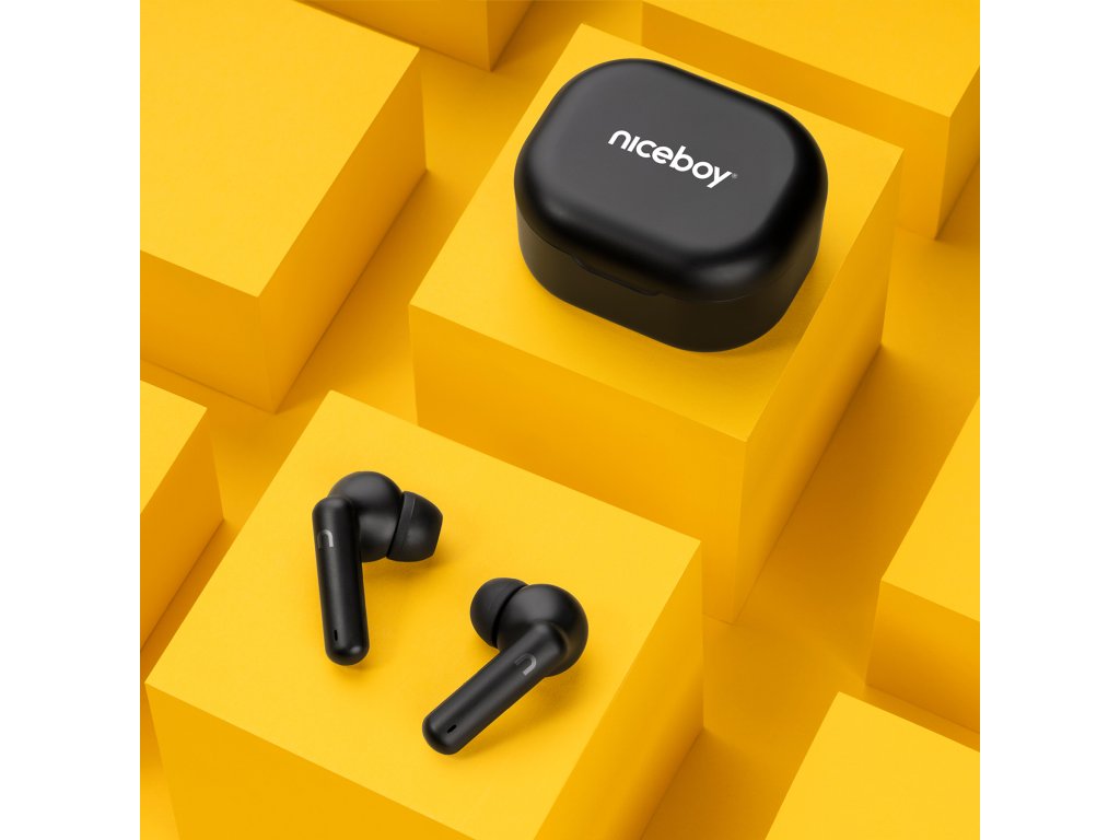Niceboy HIVE Piny 3 Až 30 hodín hudby a vlastná aplikácia Bezdrôtové sluchátka Niceboy HIVE Pins 3 spĺňajú všetko, čo potrebujete: majú skvelý zvuk, spoľahlivý bezstratový prenos a vďaka zabudovanému mikrofónu s nimi môžete dokonca telefonovať. Novinkou je vlastná mobilná aplikácia Niceboy ION, ktorá otvára ďalšie možnosti sluchadiel na čele s ekvalizérom na úpravu zvuku. Sofistikovaný zvuk a stabilný prenos So sluchátkami HIVE Pins 3 sa nemusíte obávať kompromisov v kvalite zvuku alebo stabilite prenosu. Jeho podpora kodeku AAC zaručuje maximálnu kvalitu zvuku počas prenosu, ktorý si vďaka pokročilému rozhraniu Bluetooth 5.1 zachováva stabilitu bez výpadkov. Telefonické hovory čisté a jednoduché Mikrofón zabudovaný priamo v tele slúchadiel umožňuje pohodlné telefonovanie bez toho, aby ste museli vyťahovať telefón. Všetko sa ovláda jednoduchým dotykom sluchadiel. Sú vybavené vysokokvalitnými mikrofónmi, ktoré zaručujú čistý prenos vášho hlasu. Napájanie na 30 hodín Plne nabité sluchátka dokážem hrať 5 hodín v kuse. Nabíjací box, do ktorého bez problémov zapadnú, im potom poskytne ďalších 25 hodín hudby a počúvania k tomu. A stačí 5 minút v nabíjačke a sluchátka môžu hrať ďalších 1,5 hodiny. Vodotesnosť s krytím IPX4 Slúchadlá majú stupeň krytia IPX4, takže im nevadí déšť ani pot. Nabíjanie cez USB-C Nabíjanie prebieha prostredníctvom kábla s obľúbeným konektorom USB-C. Podpora hlasového asistenta Slúchadlá podporujú ovládanie pomocou hlasových asistentov Siri a Google Assistant. Ešte viac funkcií s mobilnou aplikáciou ION Mobilná aplikácia Niceboy ION rozširuje možnosti slúchadiel HIVE Pins 3. Pomocou ekvalizéra si môžete upraviť dynamiku zvuku podľa svojich predstáv. Aplikácia vám v prípade potreby pomôže nájsť sluchátka, pretože vám na mape ukáže, kde boli naposledy pripojené k telefónu. V neposlednom rade umožňuje prispôsobiť ovládacie prvky alebo podrobne skontrolovať stav batérie jednotlivých sluchátek. Jednoduché dotykové ovládanie Slúchadlá majú intuitívne dotykové ovládanie, ktorým sa ovláda hudba aj telefónne hovory. Hlasitosť, poradie skladieb alebo prijímanie či odmietanie hovorov tak možno zariadiť jednoduchým ťuknutím na telo sluchátek. Rôzne veľkosti náušníkov Súčasťou balenia sú tri veľkosti náušníkov, ktoré padnú do každého ucha. Široký rozsah pripojenia Slúchadlá ponúkajú spoľahlivý bezdrôtový dosah až 10 metrov. Automatické párovanie Stačí raz pripojiť sluchátka k telefónu a pri ďalšom pripojení sa k zariadeniu automaticky spoja. Obsah balenia Slúchadlá Niceboy HIVE Pins 3 Nabíjací box Náhradné náušníky Kabel USB-C Manuál Špecifikácie Bluetooth: 5.1 Frekvenčné pásmo: 2,4 GHz Výkon rádiovej frekvencie: ? 2,5 mW Profily Bluetooth: HFP, A2DP, AVRCP Podporované kodeky: AAC, SBC Stupeň ochrany: IPX4 Prenosový dosah: 10 m Reproduktor: 13 mm Frekvencia: 20 Hz - 20 kHz Citlivosť: 94 ± 3dB Čas prehrávania na jedno na hodinu Kapacita batérie sluchadiel: 30 mAh Kapacita batérie nabíjacieho boxu: 450 mAh Hlasoví asistenti: Siri a Google Assistant Viacbodové párovanie: ANODodatočné parametre