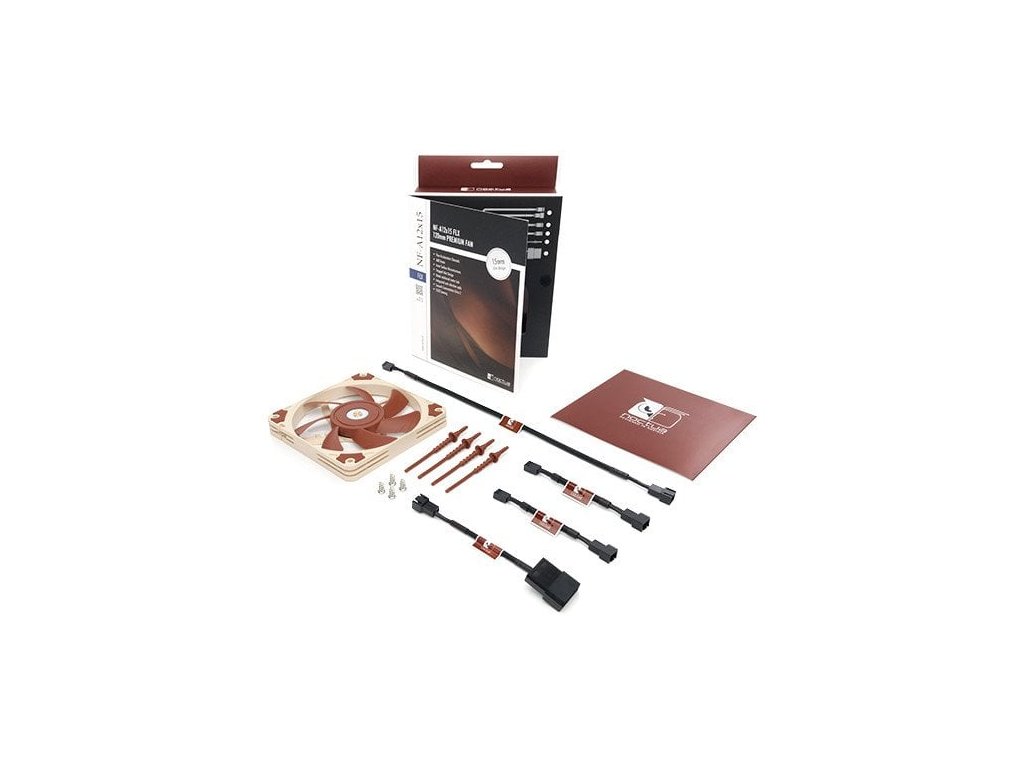 Noctua NF-A12x15 FLX Špecifikácia ventilátora: Veľkosť: 120x120x15 mm Vzdialenosť montážnych otvorov: 105x105 mm Konektor: 3-pinový Ložiská: SSO2 Tvar lopatiek: Séria A s kanálmi na zrýchlenie toku Technológia rámu (+/- 10 %): 1850 ot./min. Maximálne otáčky s LNA (+/- 10%): 1400 ot/min Maximálne otáčky s ULNA (+/- 10%): 950 ot/min Maximálny prietok vzduchu: 94,2 m3/h Maximálny prietok vzduchu s LNA: 70,8 m3/h Maximálny prietok vzduchu akustický hluk: 23,9 dB(A) Maximálny akustický hluk s LNA: 16,8 dB(A) Maximálny akustický hluk s ULNA: 10,2 dB(A) Spotreba energie: 1,56 W Rozsah napätia: 12 V MNF Adaptér veľmi nízkou hlučnosťou (ULNA) 3: 4-kolíkový napájací adaptér 30 cm predlžovací kábel Antivibračné rukoväte NA-AV3 skrutky na upevnenie ventilátoraDodatočné parametre