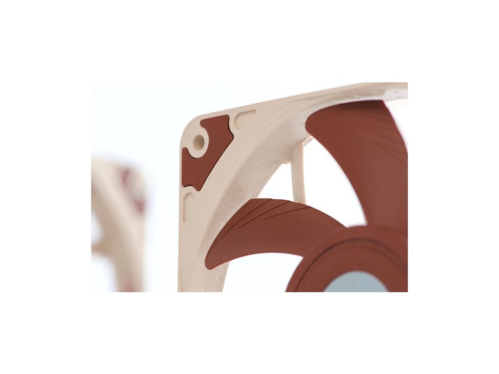 Noctua NF-A12x15 PWM Špecifikácia ventilátora: Veľkosť: 120x120x15 mm Vzdialenosť montážnych otvorov: 105x105 mm Konektor: 4-pinový PWM Ložiská: SSO2 Tvar lopatiek: Séria A s kanálmi na zrýchlenie toku Technológia Maximálne otáčky (+/- 10 %): 1850 ot. Maximálne otáčky s LNA (+/- 10%): 1400 ot/min Minimálne otáčky (PWM, +/-20%): 450 ot/min Maximálny prietok vzduchu: 94,2 m3/h Maximálny prietok vzduchu s LNA: 70,8 m3/h Maximálna akustická hluč hluk s LNA: 16,8 dB(A) Spotreba energie: 1,56 W Rozsah napätia: 12 V Napätie signálu PWM: 5 V MTBF: > 150 000 h Obsah balenia: Nízkošumový adaptér (LNA) 4-kolíkový Y-kábel 30 cm predlžovací ventilátoraDodatočné parametre