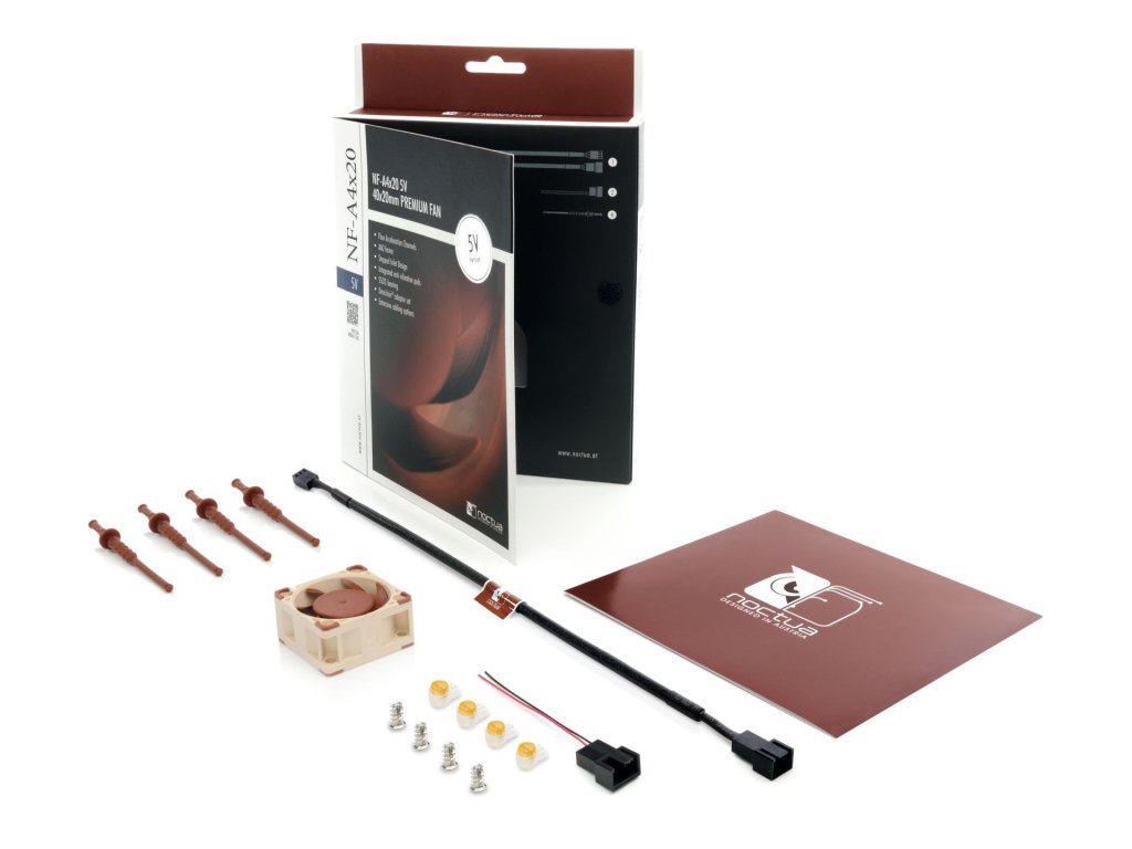 Špecifikácia ventilátora: Veľkosť: 40x40x20 mm Rozstup montážnych otvorov: 32x32 mm Konektor: 3-pinový Ložiská: SSO2 Tvar lopatiek: Séria A s kanálmi na zrýchlenie toku Technológia rámu: AAO (pokročilá akustická optimalizácia) Maximálne otáčky (0+) Maximálny prietok vzduchu: 9,4 m3/hod. Maximálna akustická hlučnosť: 14,9 dB(A) Spotreba energie: 0,5 W Rozsah napätia: 5 V MTTF: > 150 000 h Obsah balenia: NF-A4x20 5V Premium Fan 30 cm predlžovací kábel Súprava adaptérovDodatočné parametre