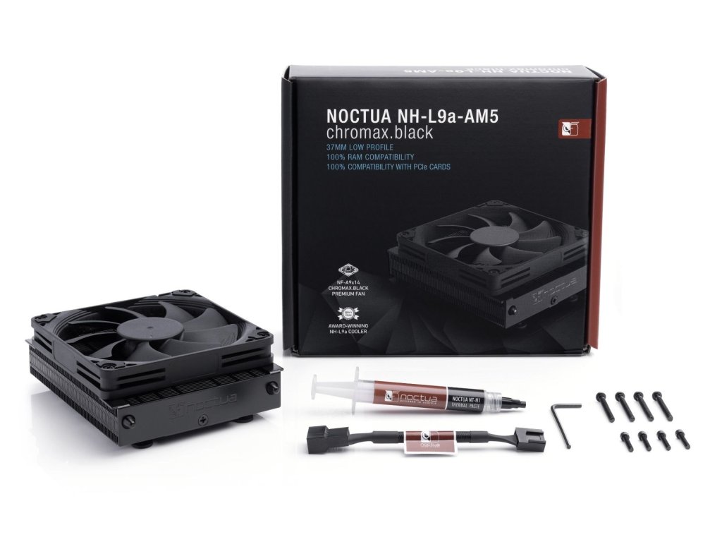 NH-L9a-AM5 chromax.black je celočierna verzia oceňovaného nízkoprofilového tichého chladiča procesora Noctua NH-L9a-AM5 pre HTPC a zostavy Small Form Factor (SFF) založenej na platforme AMD AM5. Vďaka rovnakej osvedčenej konštrukcii chladiča NF-A9x14 PWM a ventilátora zostáva verný úspešnému receptu NH-L9a-AM5 a kombinuje výšku ľan 37 mm so silným výkonom a vynikajúcim tichým prevádzkou, ako aj 100% kompatibilitu s operačnou pamäťou a PCIe. Verzia chromax.black s černým ventilátorom a chladičom s černou povrchovou úpravou zároveň kombinuje tieto silné stránky s elegantným, nenápadným vzhľadom. Chladič NH-L9a-AM5 chromax.black, doplnený o renomovaný nízkoprofilový montážny systém SecuFirm2 ™ pre AMD AM5, teplovodivú pastu Noctua NT-H1 pre nadšencov a plnú 6-ročnú záruku výrobcu, je prémiovou voľbou pre zákazníkov, ktorí hľadajú ultrakompaktný chlad.Dodatočné parametre