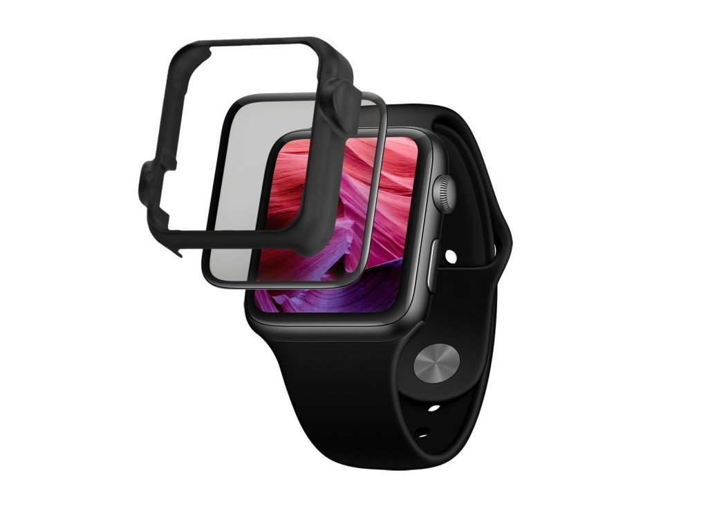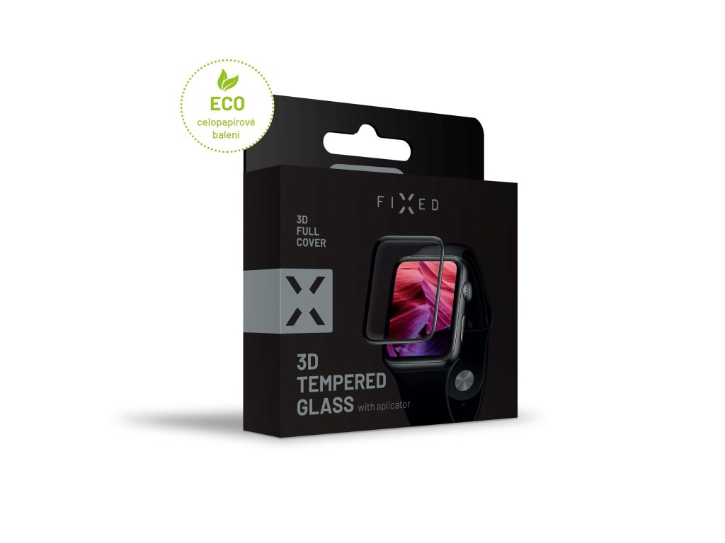 Ochranné tvrdené sklo FIXED 3D Full-Cover pre Apple Watch 42 mm s aplikátorom, s lepidlom na celý displej, čierne