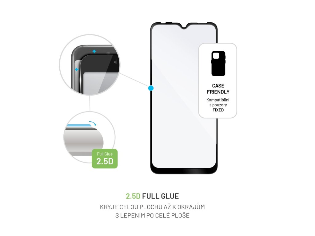 Vysokokvalitné tvrzené sklo FIXED Full-Cover s celoplošným lepením zabezpečuje maximálnu ochranu displeja mobilného telefónu. Predídete tak možnému poškodeniu v podobe prasknutého alebo poškriabaného displeja. Vďaka 2,5D konštrukcii sklo pokrýva celú plochu displeja až po okraje. Výhodou oproti bežným 2,5D sklám je lepenie po celej ploše displeja telefónu, takže sklo lepšie priľne k displeju, dokonale drží a netvoria sa na ňom mapy. Okrem toho má aj lepšiu citlivosť na dotyk. V balení nájdete všetko potrebné na jednoduchú inštaláciu. S krycím sklom FIXED Full-Cover získa váš telefón kompletnú ochranu pred nárazmi, poškriabaním a nečistotami. Vlastnosti: - zloženie displeja s ochranným krytom pre všetky typy displejov: - ochranné tvrzené sklo pre váš telefón - 2,5D - pokrýva celú plochu obrazovky až po okraje - lepenie po celej ploche skla - hrúbka: 0,33 mm - 100% priehľadnosť - oleofóbna struktura proti odtlačkom prstov - lepšia citlivosť - jednoduchá inštalácia bez vzduchových bublin - veľmi jednoduché čistenie - maximálna ochrana obrazovkyDodatočné parametre