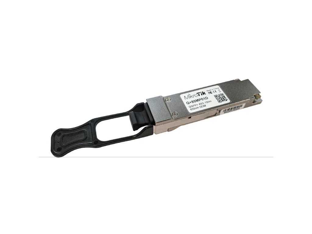 Príslušenstvo QSFP 40G pre prepínače Cloud Router, ktoré umožňuje využiť ich plný výkonnostný potenciál. Q+85MP01D je 850nm optický modul QSFP+, ktorý ponúka štyri nezávislé plne duplexné kanály s priepustnosťou až 10 Gb/s/kanál a súhrnnou šírkou pásma 40 Gb/s. Umožňuje prepojenie dlhé viac ako 100 m na OM3 Multimode Fiber (MMF) a 150 m na OM4 MMF. Modul má integrovanú diagnostiku vrátane monitorovania, nasadenia do 70 °C.Dodatočné parametre