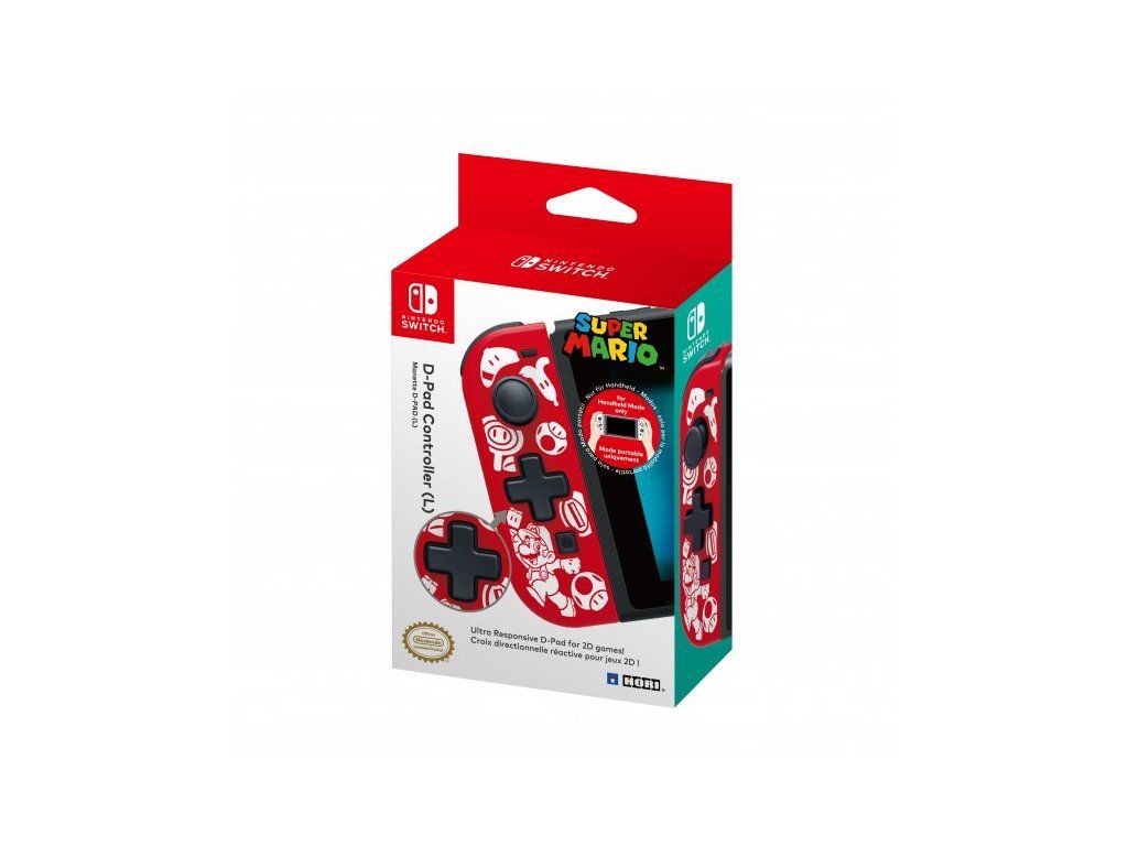 Špeciálny ovládač nahrádzajúci ľavý Joy-Con Prináša tradičný D-Pad - ideálny na hranie skákacích, bojových/akčných alebo logických her. Funguje ľan v ručnom režime, nepodporuje vibrácie, pohybové ovládanie, NFC, neobsahuje IR senzor. Neobsahuje bateriu. Obľúbený design v štýle Mario. Oficiálne licencované spoločnosťou Nintendo.Dodatočné parametre