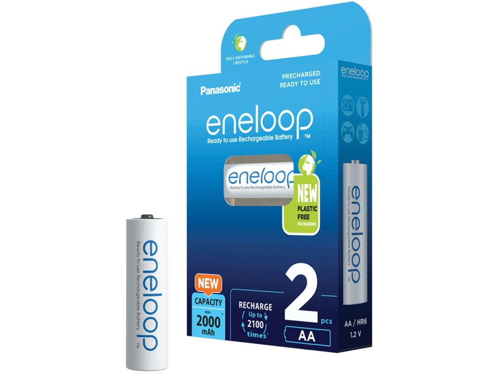 NOVINKA - ZVÝŠENÁ KAPACITA: Zvýšená kapacita min. 2000 mAh. Pripravené na použitie pre všetky vaše často používané zariadenia, ako sú hračky, baterky, herné ovládače, svítidlá, zdravotnické pomôcky atď. Naše batérie Eneloop sú kompatibilné so všetkými vašimi zariadeniami napájanými z baterií a možno ich nabíjať pomocou štandardných Ni - MH nabíjačiek. Batérie Eneloop sa dodávajú prednabité. Až 2 100 nabíjacích cyklov! Naše obaly sú teraz 100% bez plastov! Vďaka extrémne nízkemu samovybíjaniu môžete batérie Eneloop bezpečne skladovať, kým ich nebudete skutočne potrebovať. Dokonca aj po 10 rokoch skladovania majú batérie Eneloop stále 70 % svojho pôvodného nabitia. Toto balenie Eneloop obsahuje 2 batérie AADodatočné parametre
