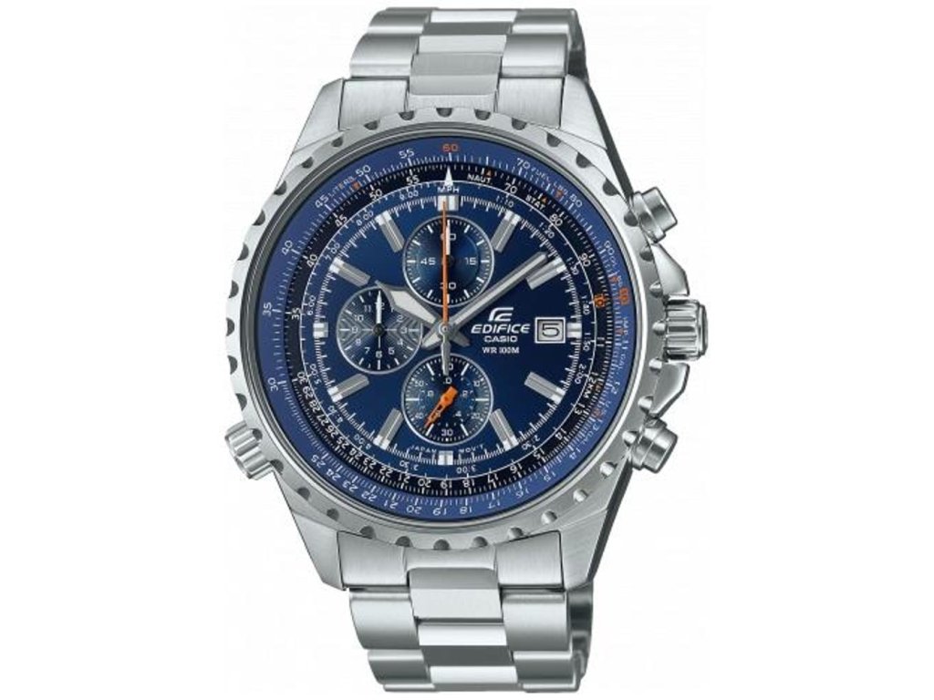Pánske hodinky CASIO v štýlovom a precíznom dizajne s tromi chronografmi a množstvom užitočných funkcií, ktoré si žiadny muž nebude chcieť odložiť. Výrazný ciferník s luminiscenčnými ručičkami vám umožní vidieť čas aj v tme. Dokonalú viditeľnosť zabezpečuje LED podsvietenie. Pánske náramkové hodinky Napájanie z batérie Strojček 4369 Priemer puzdra 46,0 mm Pouzdro v tvare kruhu Oceľové pouzdro Šrúbkovacia korunka Strieborná farba pouzdra Oceľový ťah Ťahadlo striebornej farby Ručičkový ciferník Modrá farba ciferníka Číselník voči vode pri plávaní Dátum StopkyDodatočné parametre