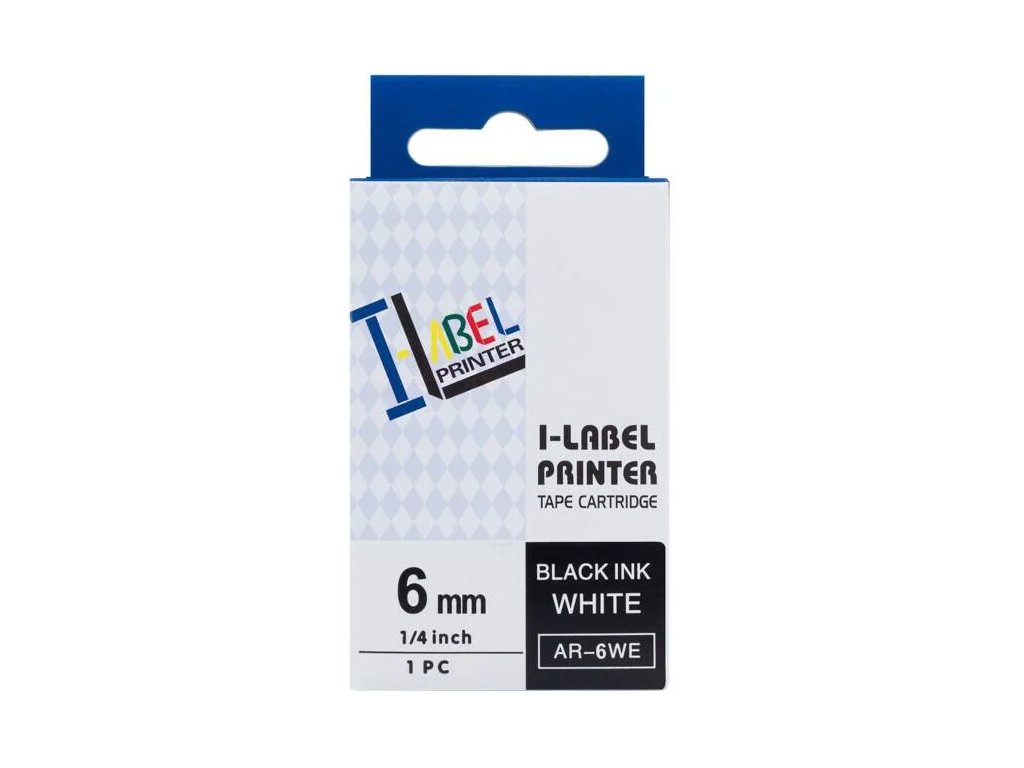 Páska PRINTLINE kompatibilná s Casio, XR-6WE1, 6 mm, 8 m, čierna tlač/biele pozadie