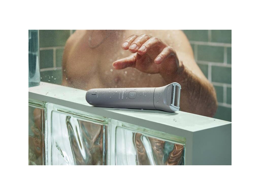 Pánsky elektrický zastrihávač chĺpkov Philips série 3000 na suché a mokré holenie tela a intímnych oblastí.Holiaci systém s trojitou ochranou.