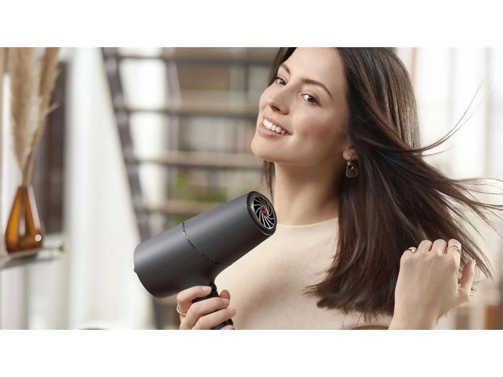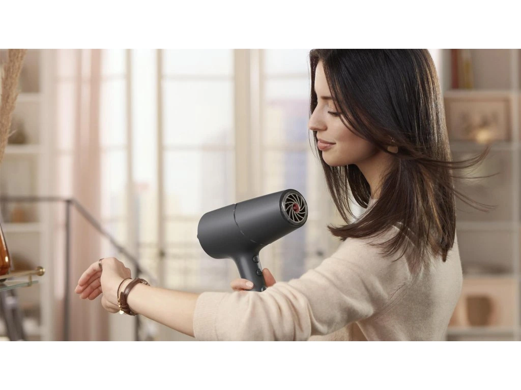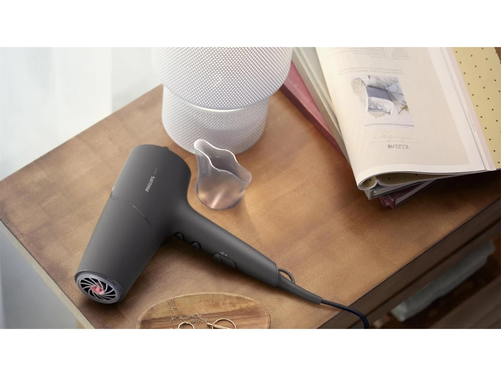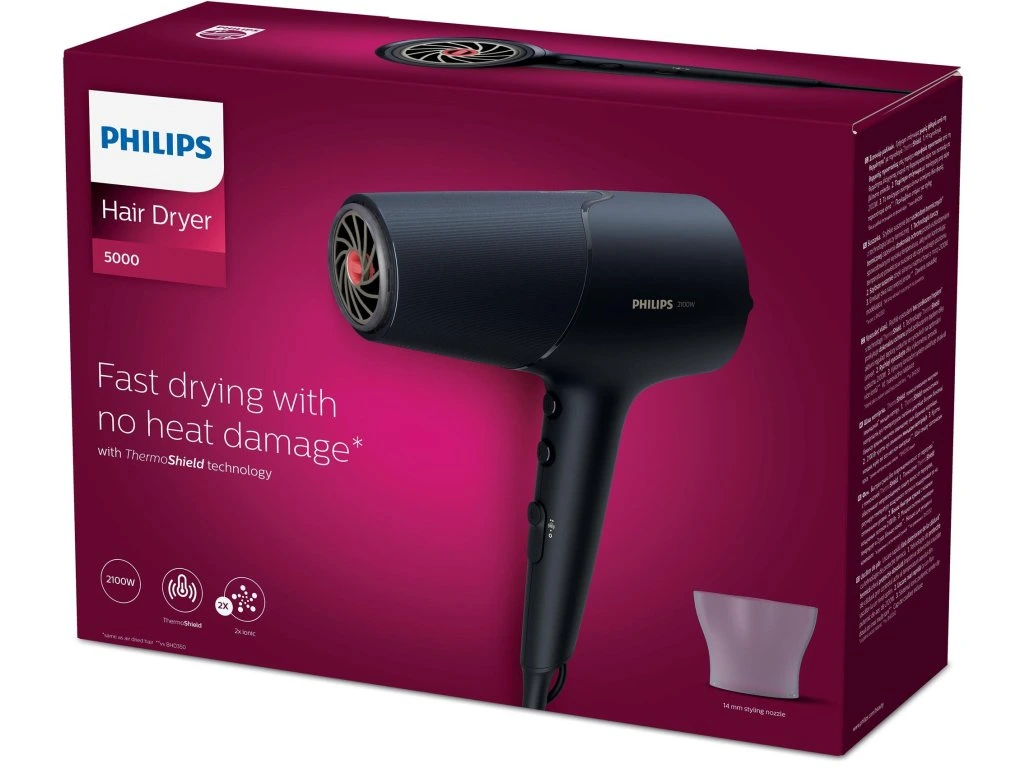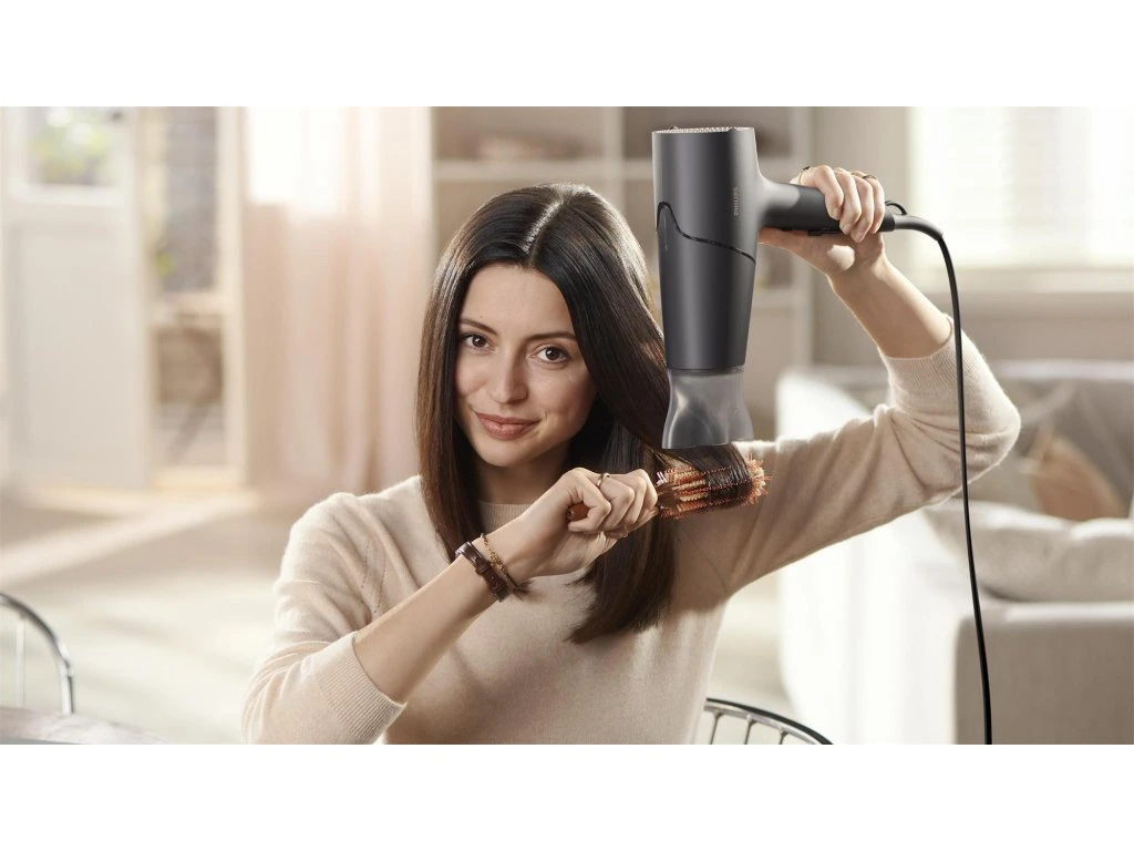 Technológia ThermoShield pre maximálnu ochranu pred teplom Snímač aktívne optimalizuje a reguluje teplotu vzduchu, čím chráni vaše vlasy pred poškodením spôsobeným nadmernou teplotou. Vďaka technológii ThermoShield si budete môcť vychutnať sušenie vlasov bez stresu. Rýchle sušenie pre profesionálne výsledky vďaka výkonu 2 100 W Tento profesionálny sušič vlasov s výkonom 2 100 W vytvára silný prúd vzduchu. Výsledná kombinácia výkonu a rýchlosti urýchľuje a usnadňuje sušenie a úpravu vlasov. 2× viac ionizačnej starostlivosti pre lesklé vlasy bez krepovatenia Tento výkonný ionizačný systém vytvára až 40 miliónov iónov počas jedného vysúšania, čím zvyšuje lesk vašich vlasov. Môžete sa tak tešiť z lesklých vlasov bez krepovatenia. Ošetrujúca technológia Technológia ThermoShield Áno Ionizačná technológia 2x viac iónov Rozšírenia Tvarovací hrot 14 mm Funkcie Nastavenie teploty/rýchlosti 6 Prietok chladného vzduchu Áno Háčik na zavesenie Áno Technické údaje Výkon 2100 W Motor DC m Farba/povrch Antracitová metalízaDodatočné parametre