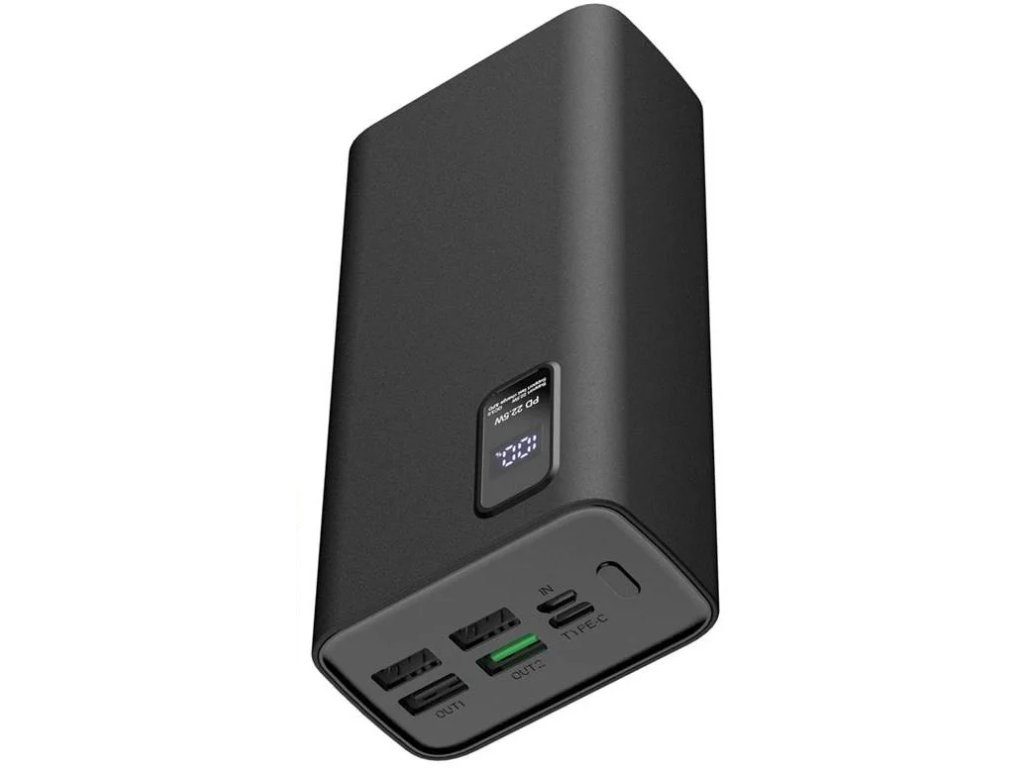 Powerbanka s polymerovou bateriou s kapacitou 30 000 mAh. LED displej zobrazujúci parametre nabíjania a úroveň nabitia batérie v percentách. Elegantný a minimalistický moderný dizajn, vyrobený z odolných materiálov odolných voči poškodeniu. Výstupy: 2xUSB konektory s technológiou superrýchleho nabíjania Quick Charge 3.0 max. 22,5 W, USB-C s technológiou Quick Charge 3.0 a Power Delivery 3.0 max. 20 W. Vstup: konektor MicroUSB a konektor typu C na nabíjanie powerbanky. Vstupy: microUSB a USB-C. Power banka môže nabíjať až 5 externých zariadení súčasne. Navrhnutá s vysoko kvalitnými komponentmi s viacúrovňovou ochranou (proti prebitiu, vybitiu, prehriatiu, prepätiu, nadprúdu, skratu a elektromagnetickému poľu). Technické parametre: MicroUSB vstup: 5V-2,1A DC USB-C: 5V-3A / 9V-2A / 12V-1,5A Výstup USB OUT2: 5V-4,5A / 5V-3A / 9V-2A / 12V-1,5A Výstup USB OUT1 Výstup USB-C: 5V-3A/9V-2,22A/12V-1,67A. Čas nabíjania: približne 3 hodiny. Rozmery: 143x68x40 mm. Hmotnosť: 608 g. Kabel: USB-C 30cm v balení. Farba: čierna. Balené v krabici s háčikom na zavesenie.Dodatočné parametre