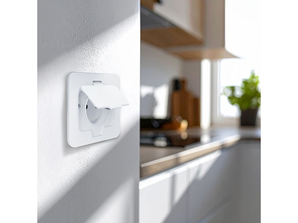 Veko sa otvára až do uhla 120°, čo uľahčuje manipuláciu s prívodnými káblami. V porovnaní s modelmi s menším uhlom otvárania nedochádza k namáhaniu pántov a nehrozí, že by sa veko aj pri častom používaní odlomilo. Zásuvka je vybavená detskou poistkou pre maximálnu bezpečnosť v priestoroch, kde sa pohybujú malé deti.